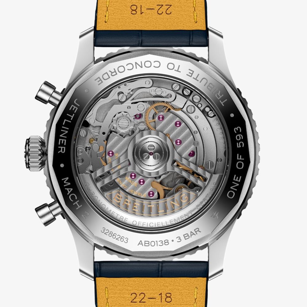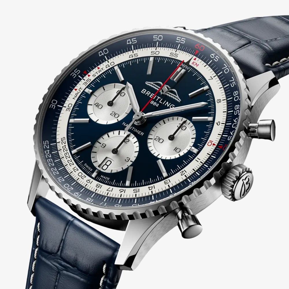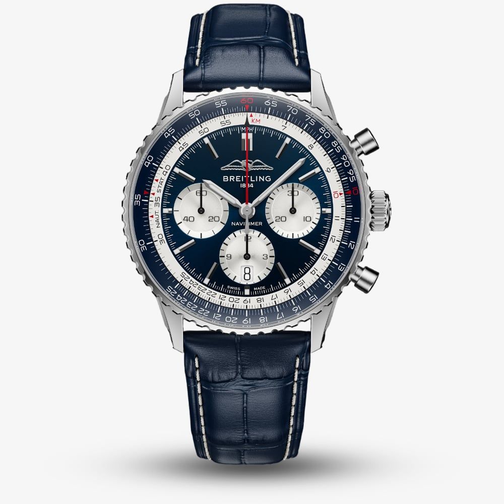 • 30 metre water resistance.Breitlinghttps://www.thbaker.co.uk/media/catalog/product/2/4/24-12-25156712_breitling_03.jpghttps://www.thbaker.co.uk/media/catalog/product/2/4/24-12-25156712_breitling_02.jpgadd-to-cartcondition:Nodisc_no_stock:Noex_display:NoNoNoNo241225156712BreitlingAB01389C1C1P1MensOfficial Breitling Packaging5 Year Breitling WarrantyLuxuryNoChronographWatchStainless SteelBlueLeather StrapStainless SteelRound43.0mmAnalogueSapphire Crystal GlassBlueBlue30 metresAutomaticPin BuckleNo StoneNo Stone97.83gNoNoYesNoNoYesNo{"name":"v12_finance","text":"Or from \u00a3152 per month","imageUrl":"https:\/\/www.thbaker.co.uk\/media\/nosto\/v12-finance.png"}Breitling Mens Navitimer B01 Chronograph 43 'Tribute To Concorde' Watch24-12-251567122026-03-18 00:00:0002026-03-18