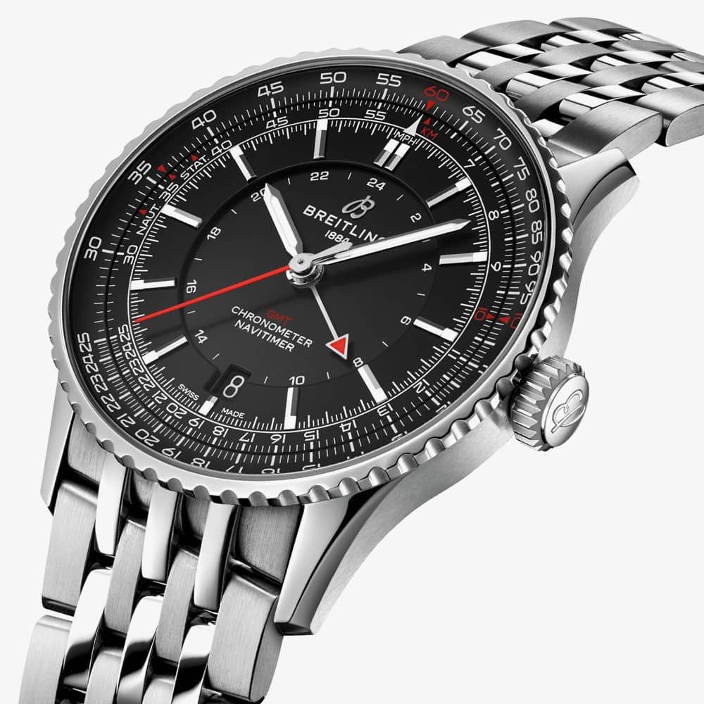 Originating in 1952 as a navigational aid for pilots, it has since transcended its utilitarian roots, holding deep personal significance for all who have worn it on their individual paths. This automatic watch is powered by a self-winding mechanical Breitling 32 calibre with a second 24 hour timezone. This watch features a notched bezel lends a contemporary flair, complemented by alternating polished and brushed finishes that play with light in captivating ways with a cambered sapphire glass with glareproof on both sides.