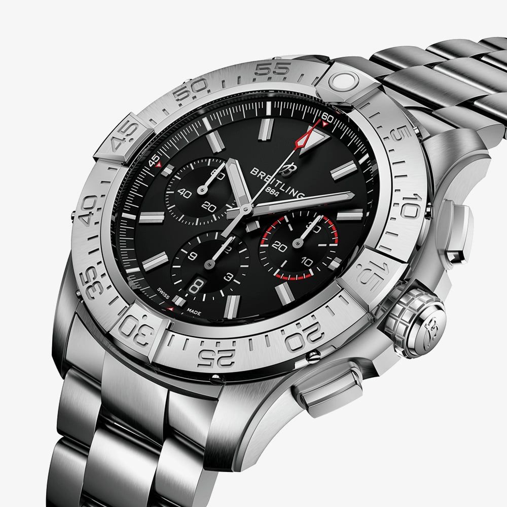 Designed for jet pilots, the Avenger is built to handle extreme conditions. Its bold design, durability, and advanced features appeal to all, not just aviators. Made with aviation-inspired materials—stainless steel for standard models, ceramic and titanium for Night Mission—its dials echo military uniform colours. Stainless steel models offer a choice of leather strap or a steel bracelet, while ceramic models come with a leather strap and titanium buckle. With 300m water resistance, easy-grip controls, and corrosion resistance, the Avenger is built for action.