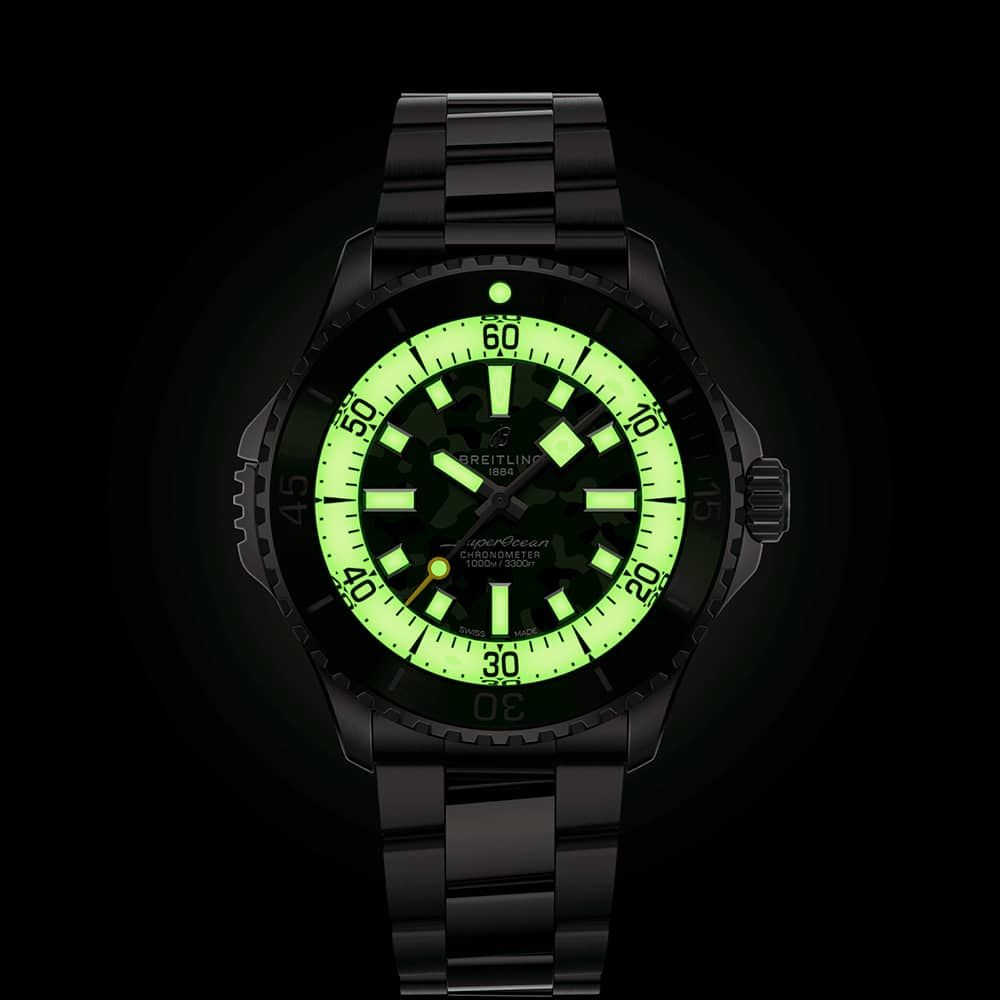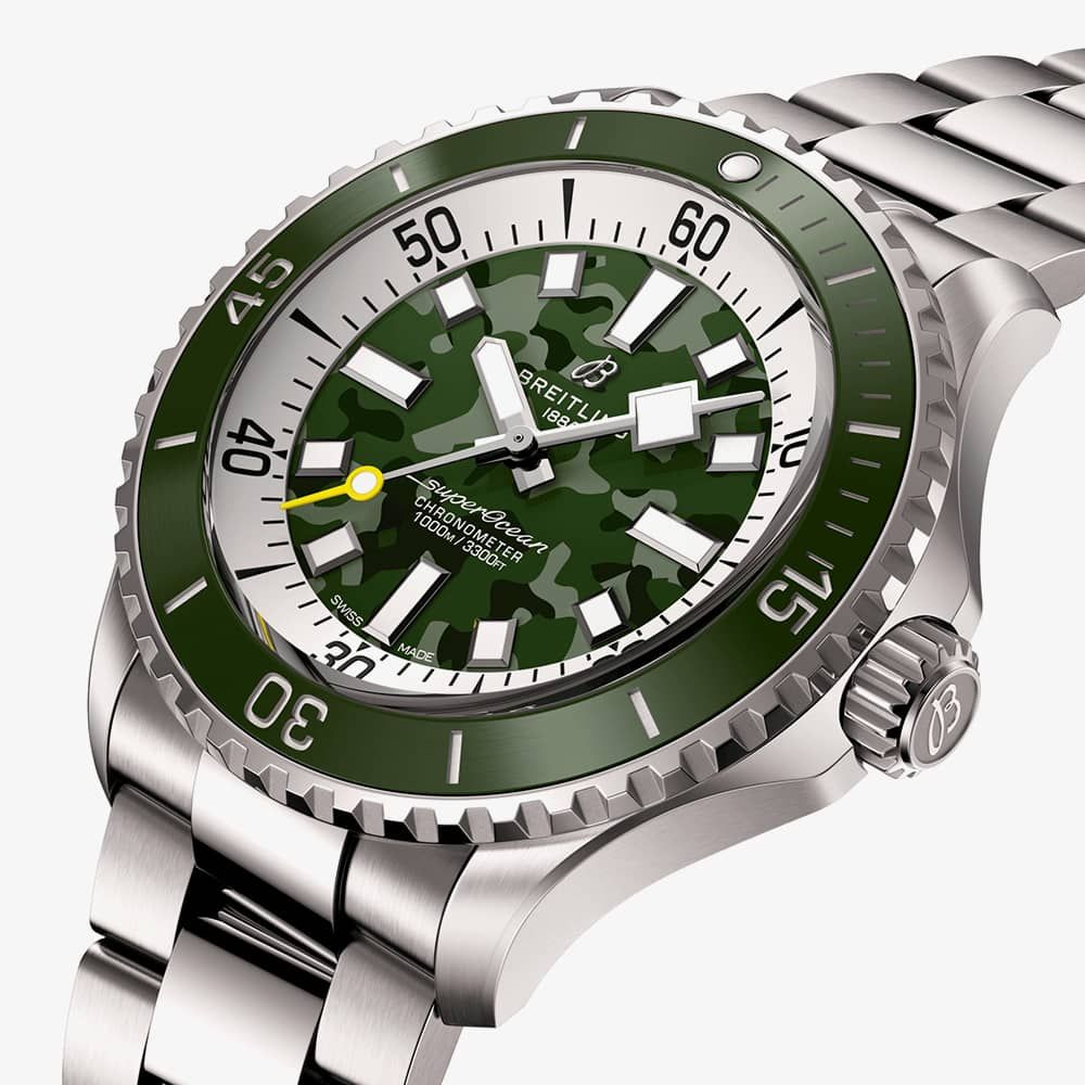 https://www.thbaker.co.uk/breitling-superocean-automatic-46-super-diver-camo-dial-watch-e10379d31l1e1147128Breitling Superocean Automatic 46 Super Diver Camo Dial Watch E10379D31L1E1https://www.thbaker.co.uk/media/catalog/product/2/4/24-12-25125052_breitling_01.jpg60506050GBPOutOfStockSuperocean Auto 46 Super Diver Titanium Bw Camo Dial Green Bez Super performance for all your water-based pursuits. In the 1960s, the new sport of scuba diving was all the rage. For divers, timing was everything, and Breitling set out to create the clearest dive watch possible by eliminating any feature that didn’t support their lifesaving needs underwater. This pared-down watch was named the Superocean Slow Motion.