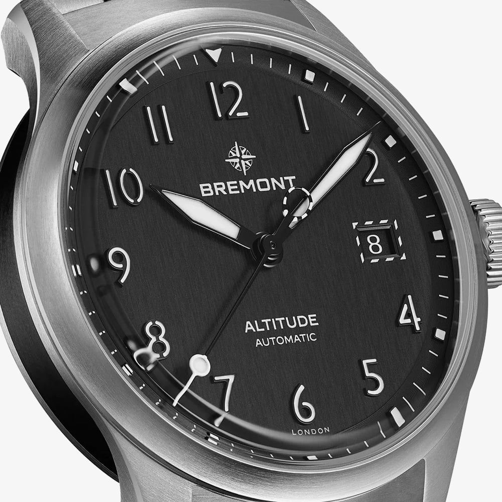 A rugged evolution of Bremont’s iconic MB design, the Altitude 39 Date blends military grade durability with everyday wearability. Crafted from ultra-tough 904L stainless steel with a black DLC-coated barrel, its refined 39mm case offers a slimmer, easy wearing profile. Inside, the anti-shock, anti-magnetic BB14 movement delivers 68 hours of power and is showcased through a gunmetal open case-back, shielded by Faraday Cage tech.