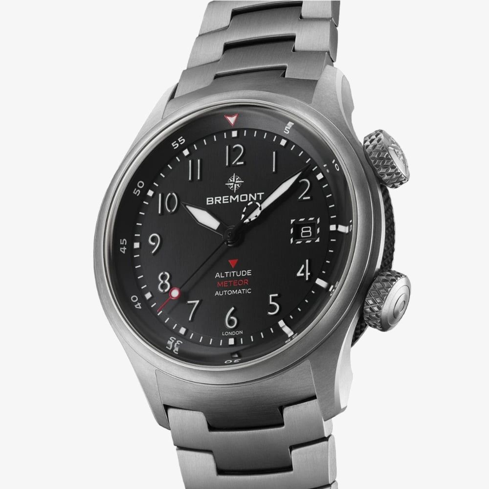 This timepiece embodies sophistication and rugged reliability. Crafted with a titanium case and a sleek black dial, this watch merges durability with elegance, ensuring it withstands the rigours of both urban landscapes and the great outdoors. Its Swiss automatic movement guarantees unparalleled accuracy, keeping you on time. The lightweight yet robust titanium bracelet delivers unparalleled comfort for all-day wear without compromising on style while the scratch-resistant sapphire crystal glass protects the dial, maintaining its pristine clarity.