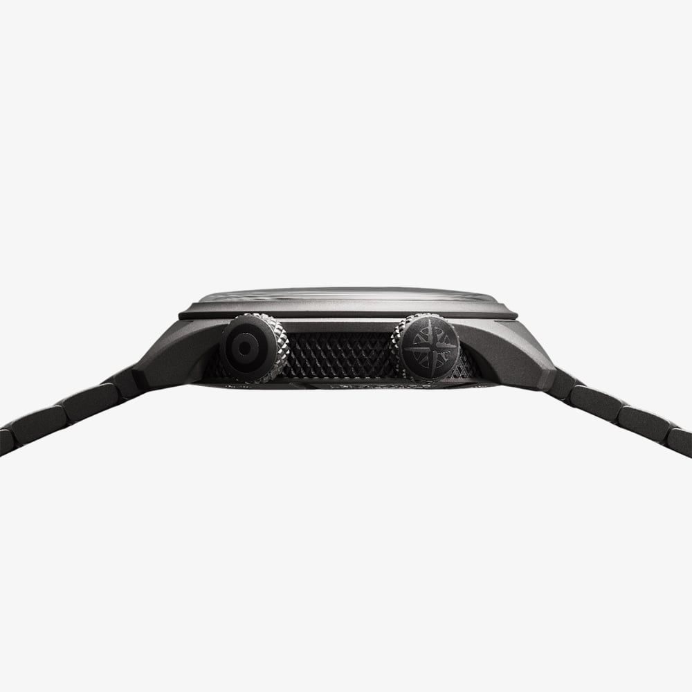 Housed in a lightweight titanium case and bracelet, the watch features an ultra-matt finish and a textured dial, delivering a sleek, stealth-inspired aesthetic with a modern, technical edge. Precision-engineered and rigorously tested in extreme conditions, it combines military-grade durability with elevated design, perfect for those who demand both style and substance in every environment.