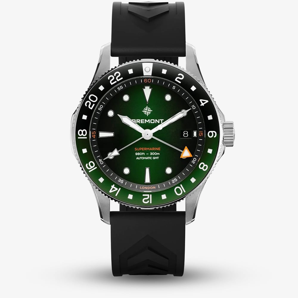 Built to perform in the harshest environments, the Bremont Supermarine Tundra Green draws inspiration from the rugged, untamed beauty of Iceland’s dramatic landscapes. With 300m water resistance, it’s a true dive-ready companion designed for marine exploration and adventure. Featuring a green and black gradient dial and matching bi-directional bezel with luminous hands and hour markers ensuring visibility in all conditions. A black rubber strap adds comfort and durability, ideal for both land and sea. The engraved case back pays tribute to Bremont’s legacy of marine discovery.