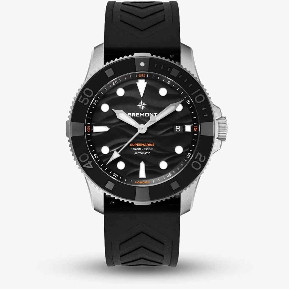 This rugged timepiece boasts a water resistance of up to 500 metres. Whether you're navigating ocean depths or pushing limits on land, it’s designed to perform in the most demanding environments. The bold 43mm stainless steel case houses a deep black dial with luminous markers and hands for maximum legibility, even in complete darkness. A unidirectional bezel lets you track dive times with confidence, while the automatic movement ensures unrivalled accuracy. The black rubber strap adds lightweight comfort and modern edge, perfect for active lifestyles.