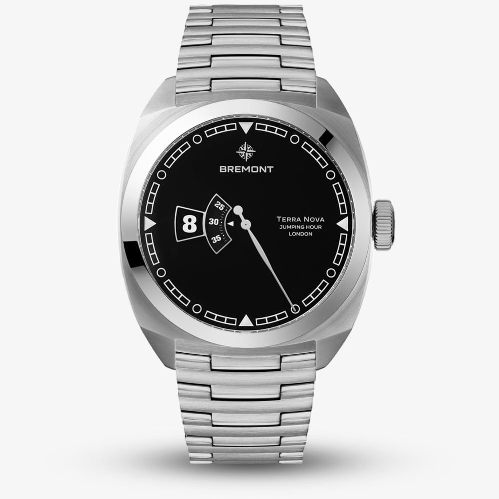 https://www.thbaker.co.uk/bremont-mens-terra-nova-jumping-hour-stainless-steel-watch-tn40-jh-ss-bk-l-s161261Bremont Mens Terra Nova Jumping Hour Stainless Steel Watch TN40-JH-SS-BK-L-Shttps://www.thbaker.co.uk/media/catalog/product/b/r/bremont_tn40.5_jh_br_front.jpg37503750GBPInStockTerra Nova Jumping Hour Stainless Steel This luxurious timepiece blends rugged durability with elegant design. At its heart lies a sophisticated jumping hour mechanism, seamlessly integrated into the dial, ensuring precise timekeeping in any environment. The stainless steel case offers exceptional resilience, capable of withstanding the rigours of exploration while maintaining its timeless appeal. This watch also features luminous hands and markers for optimal readability in low-light conditions. Sapphire crystal glass provides exceptional scratch resistance for the bold black dial, while the stainless steel bracelet ensures a comfortable and secure fit.