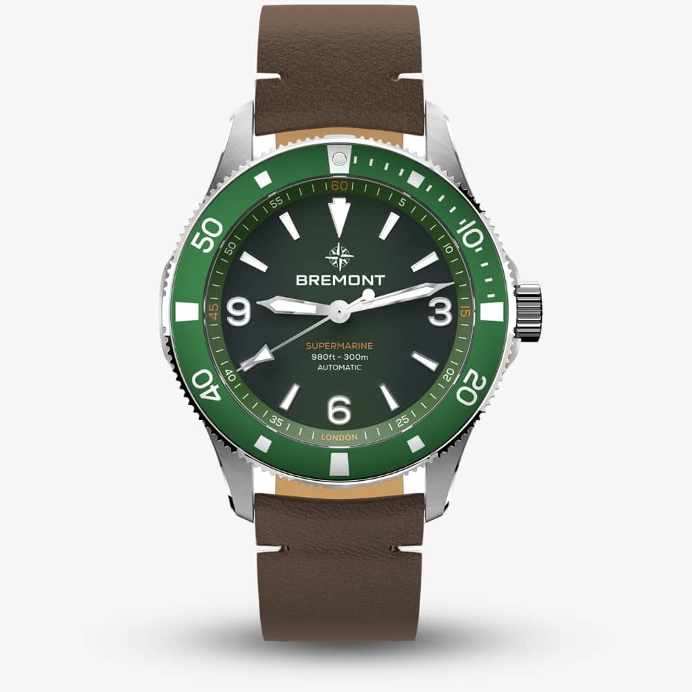 Featuring a rich brown leather strap that exudes classic elegance, this watch is complemented by a striking green uni-directional bezel and a mesmerising gradient dial. With its blend of style and functionality, this timepiece effortlessly transitions from formal occasions to everyday wear.