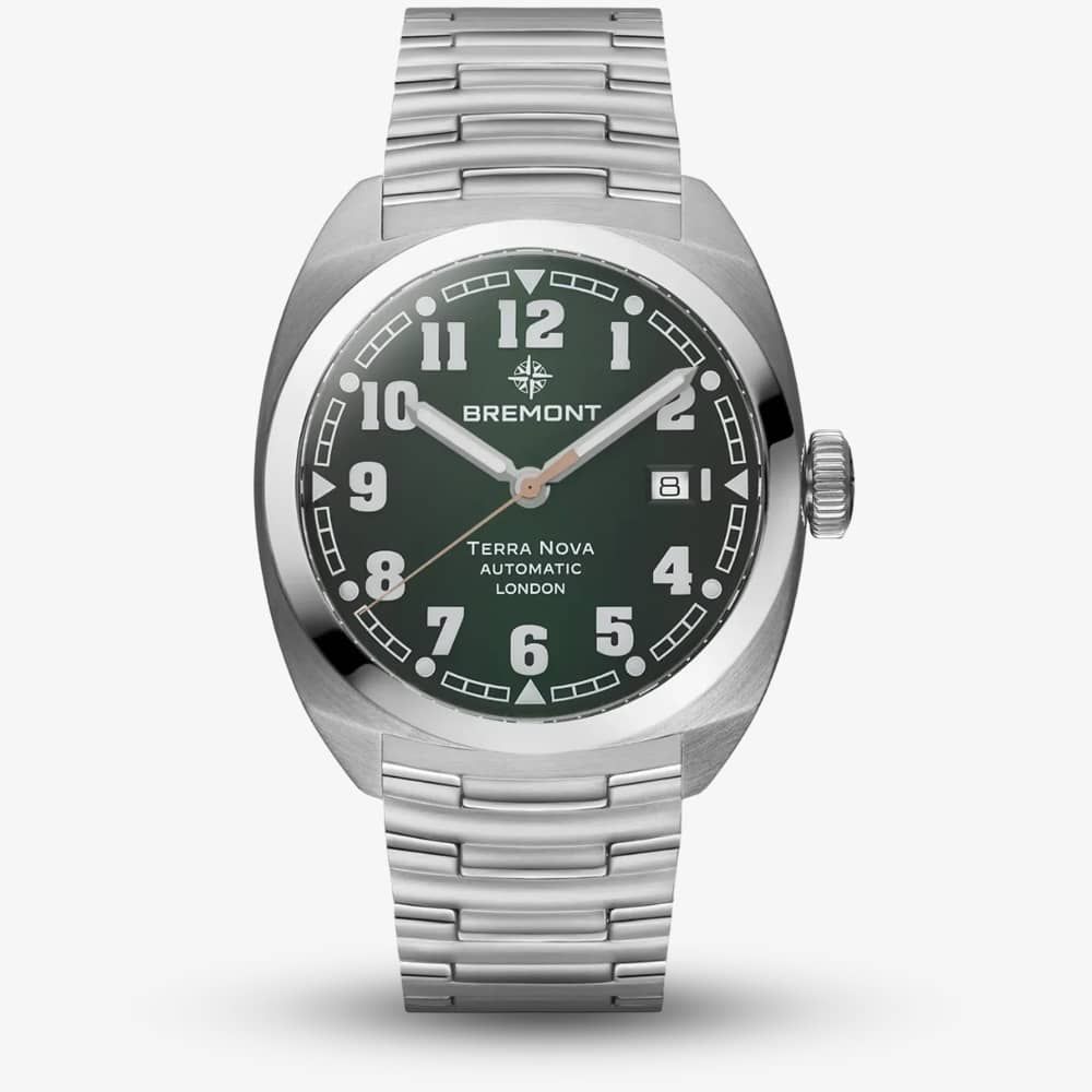 Bremont introduces the Terra Nova field watch collection, drawing inspiration from early 20th-century military pocket watches. This collection features a contemporary geometric cushion case, made from 904L stainless steel and finished with a mix of brushed and polished textures, creating a distinctive and iconic wristwatch.