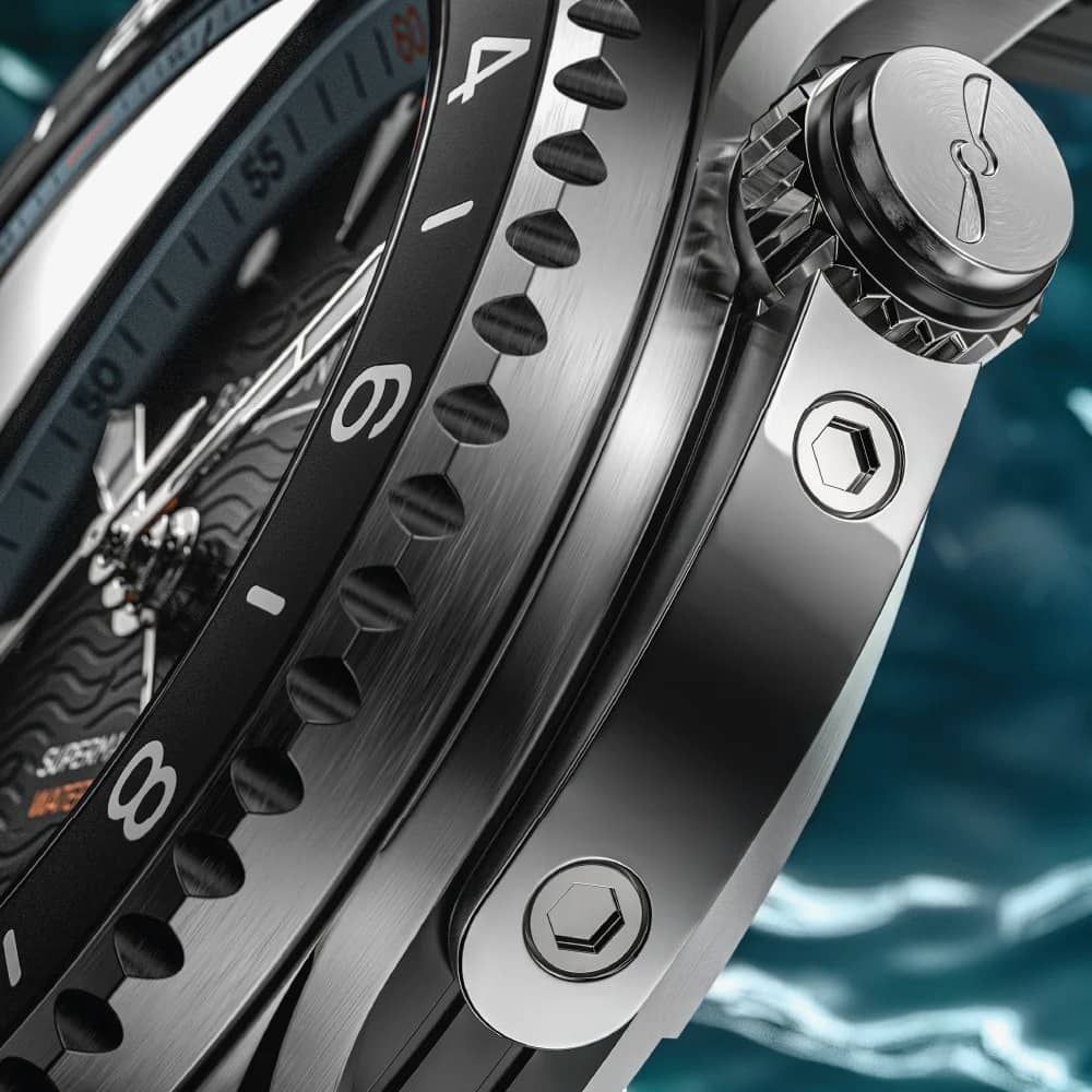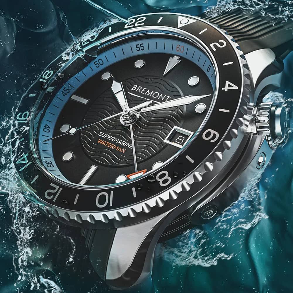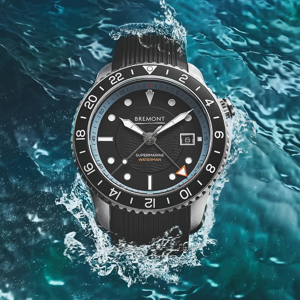 Created in collaboration with Laird Hamilton, the Waterman Apex II reflects his pioneering spirit in board sports. The limited edition boasts a matte black dial with a shark fin motif, framed by a Harbour Blue dial flange and matching integrated rubber strap. Super-LumiNova® accents, including vibrant orange details, enhance visibility.