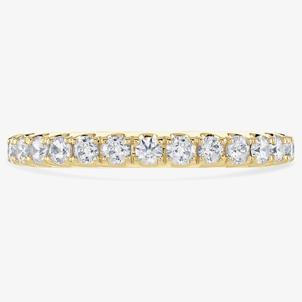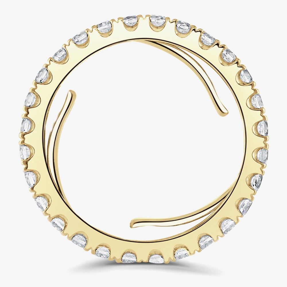 From Brown & Newirth, this beautiful Evolution full eternity ring has been handcrafted in 18ct yellow gold with 1.50ct of claw set brilliant cut diamonds which adorn the full hoop of this 3.1mm width band. Catching the light beautifully, these diamonds are ethically sourced & are H in colour with a SI in clarity. This eye-catching ring also features three ergonomic arms that are neatly tucked away through its lining and adapts with changes to your finger up to four sizes.