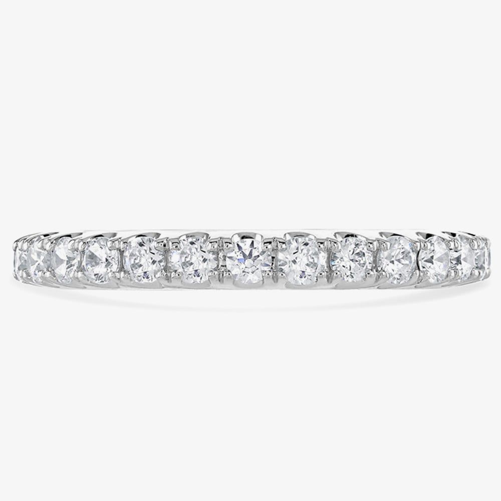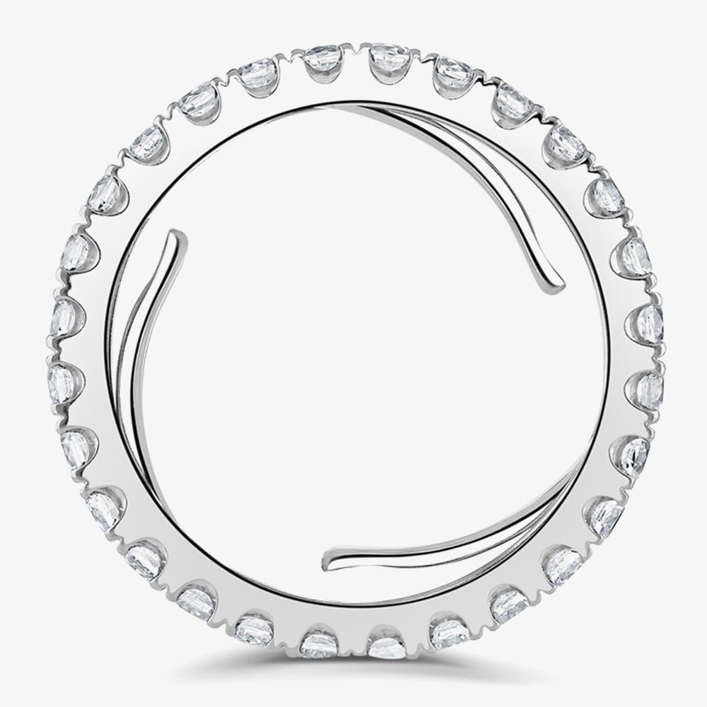 From Brown & Newirth, this beautiful Evolution full eternity ring has been handcrafted in Platinum with 1.50ct of claw set brilliant cut diamonds which adorn the full hoop of this 3.1mm width band. Catching the light beautifully, these diamonds are ethically sourced & are H in colour with a SI in clarity. This eye-catching ring also features three ergonomic arms that are neatly tucked away through its lining and adapts with changes to your finger up to four sizes.