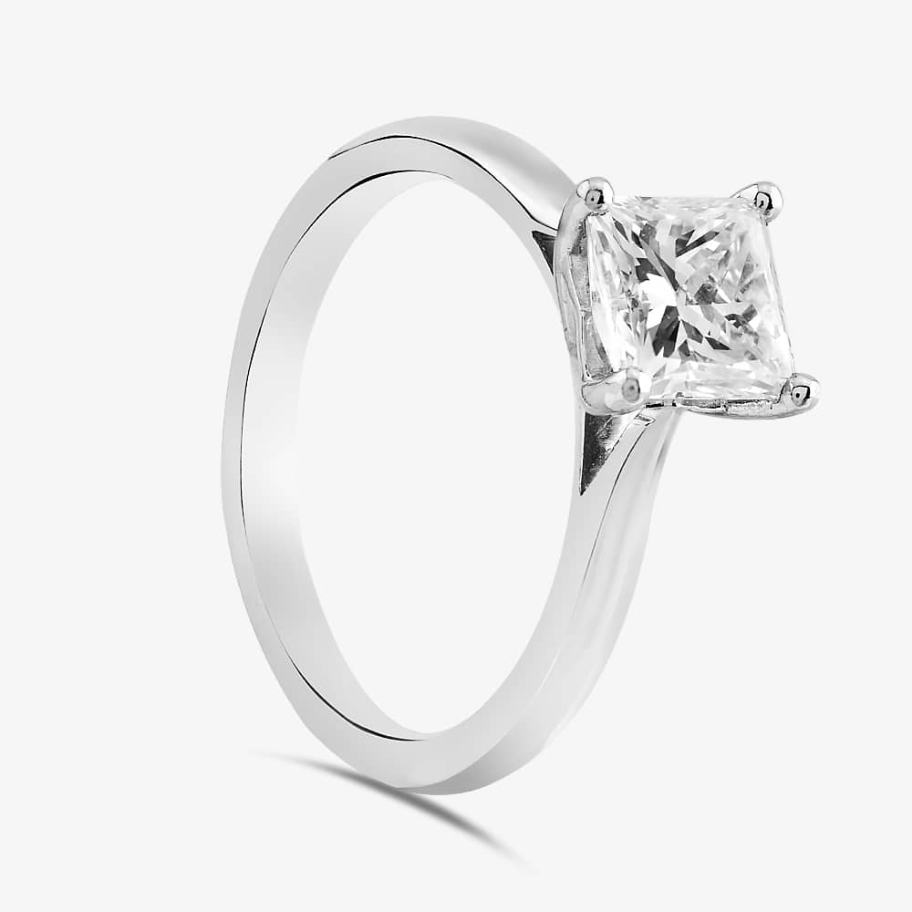 The Brown & Newirth Solitaire Ring is a stunning masterpiece of jewellery craftsmanship. Exquisitely crafted from the finest platinum, this delicate solitaire ring is adorned with an SI1 clarity, certified 1.51ct princess-cut white diamond with a graded colour of G. The diamond is set in a classic four-claw setting that showcases its brilliant sparkle. This ring is a symbol of eternal love and commitment, and it is sure to turn heads wherever you go.