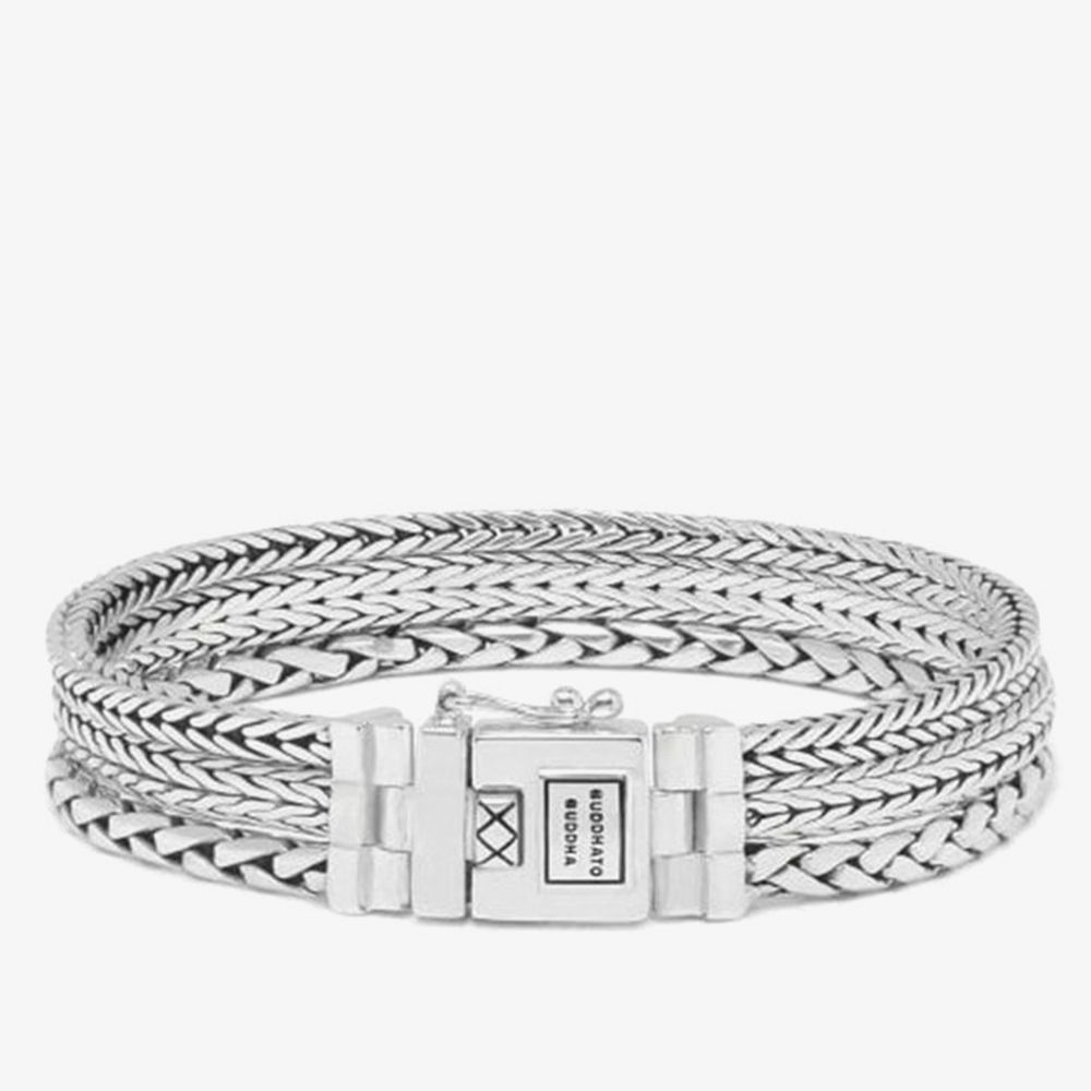 Buddha To Buddha Silver Triple Mini Silver Bracelet J104 F measures 21 cm and is made from sterling silver and has a triple band desing.This bracelet like all of buddha to buddha products is handmade.