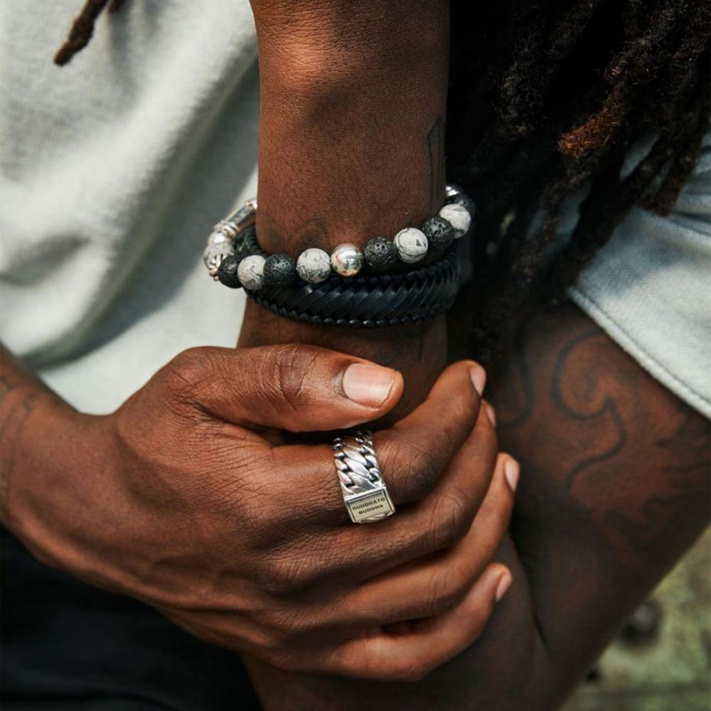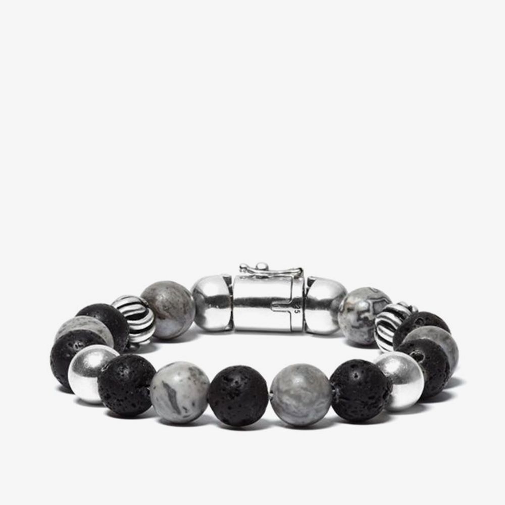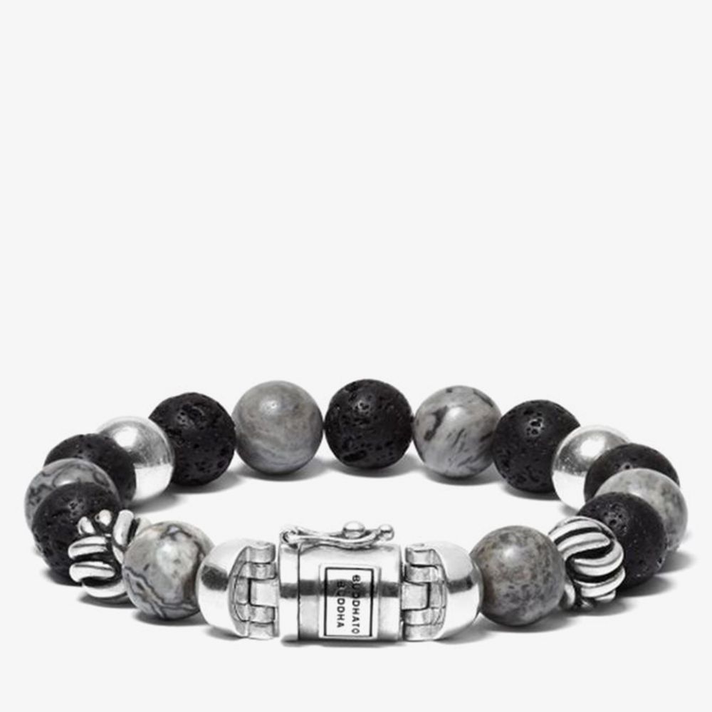 Buddha To Buddha Spirit Grey Bead Mix Bracelet 188MG F measures 21 cm and is made from sterling silver and features black and grey beads.