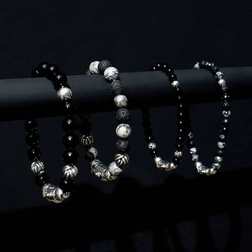 This handmade, timeless bracelet is inspired by prayer beads and features an iconic sterling silver lock. The black onyx beads are said to provide support, strength, and perseverance. The bracelet is easy to combine with leather or silver pieces, but please note that the lock contains a magnet, which is not stainless steel. Therefore, it is important to avoid contact with water to prevent rust.