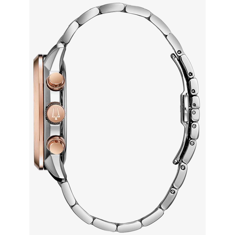 Bulova Mens Classic Stainless Steel Black Chronograph Dial Rose Gold Plated Two Tone Bracelet Watch 98B335
