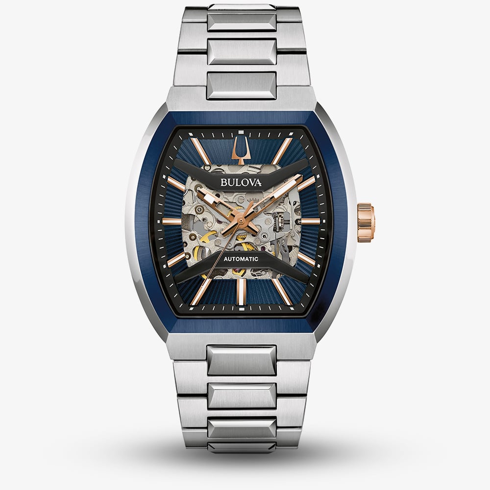Bulova Mens Maquina Automatic Blue Dial Skeleton Watch 98A319