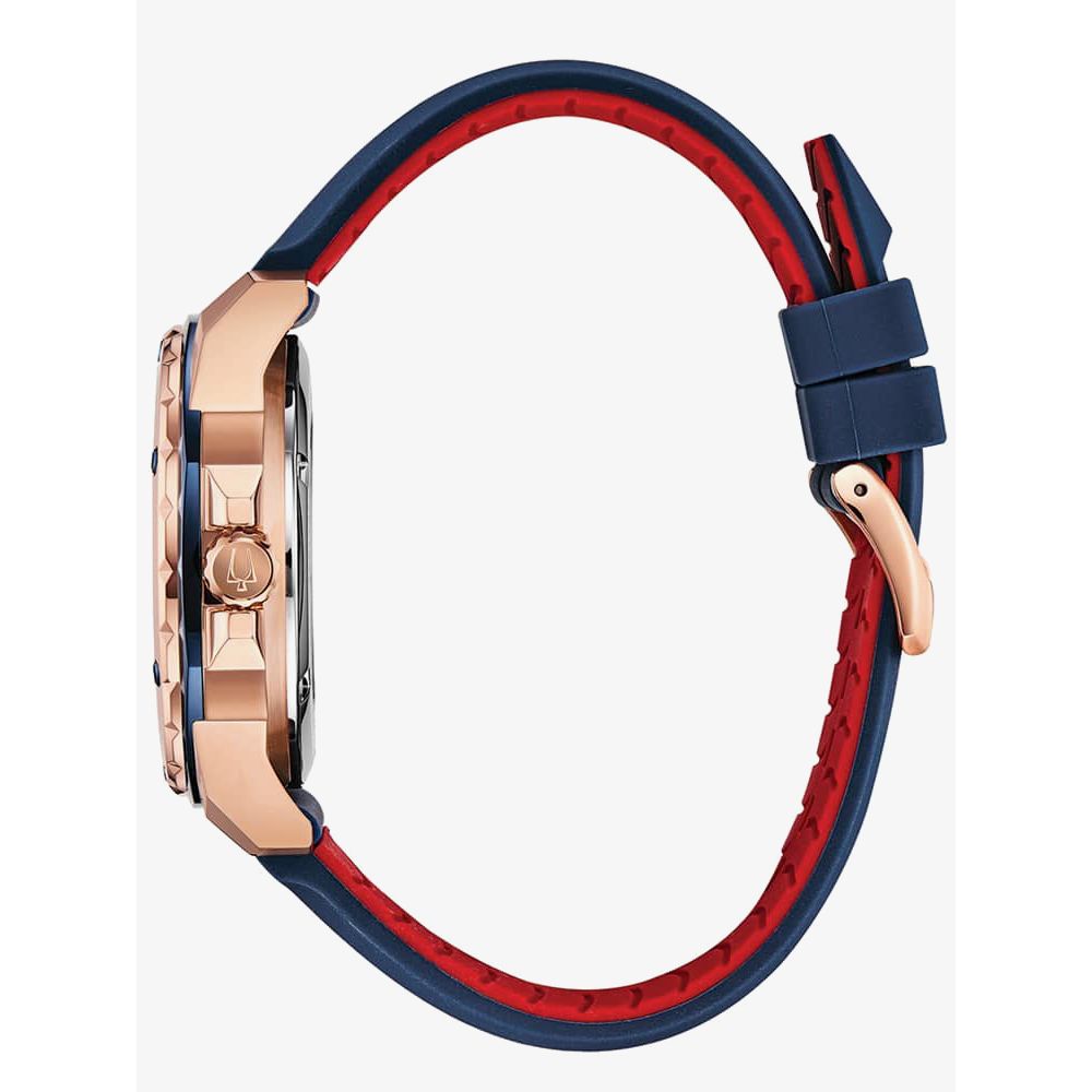 Bulova Mens Marine Star Rose Gold Plated Automatic Blue Dial Rubber Strap Watch 98A227