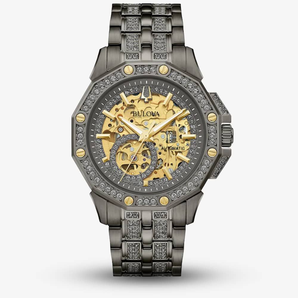 Bulova Mens Octava Crystal Gunmetal Grey Watch 98A293