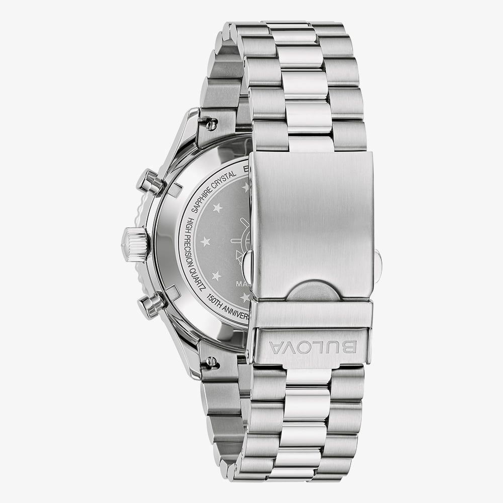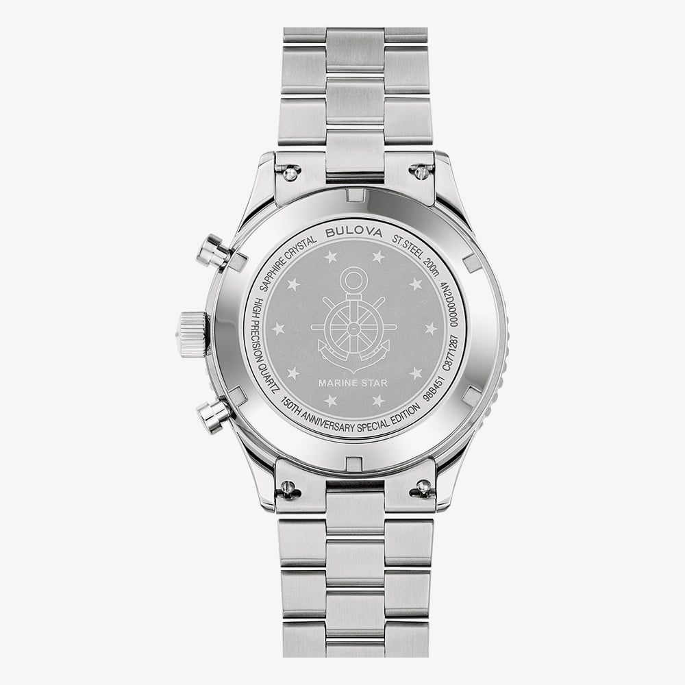 Celebrate 150 years of innovation with the Bulova Men’s Special Edition Marine Star Watch. Designed to honour the brand’s legacy, this standout timepiece features a bold black and red uni-directional bezel, sapphire crystal glass for superior clarity and scratch resistance, and a durable stainless steel bracelet for a sleek, timeless look. Built with precision and style in mind, this anniversary edition is a striking tribute to Bulova’s enduring craftsmanship and maritime spirit.