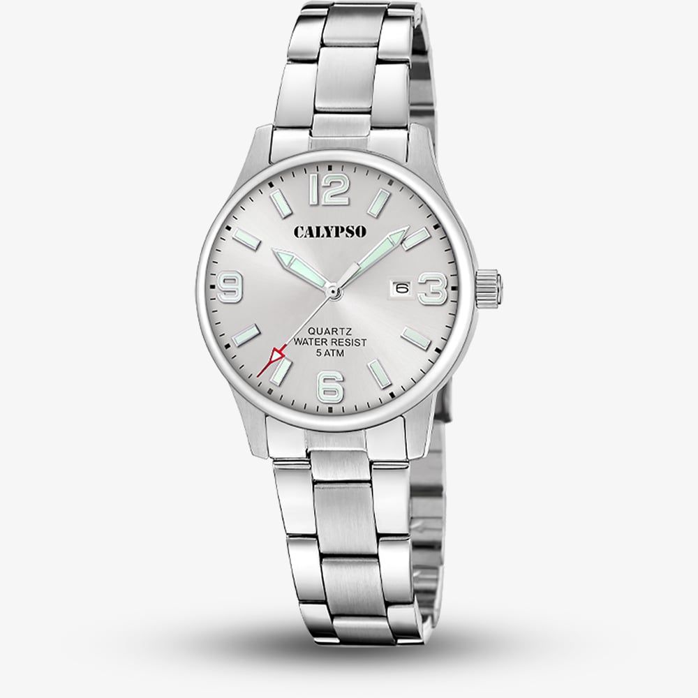 This grey Calypso watch is designed to captivate with their vibrant, fresh, and outgoing aesthetic, featuring bold colours that make a statement. These timepieces are perfect for individuals who embrace a lively and energetic lifestyle, offering a unique blend of style and functionality. Whether it's the striking hues or the modern design, Calypso watches are all about standing out and expressing personality through bold, eye-catching details. They are ideal for those who seek to add a pop of colour and excitement to their everyday wear.