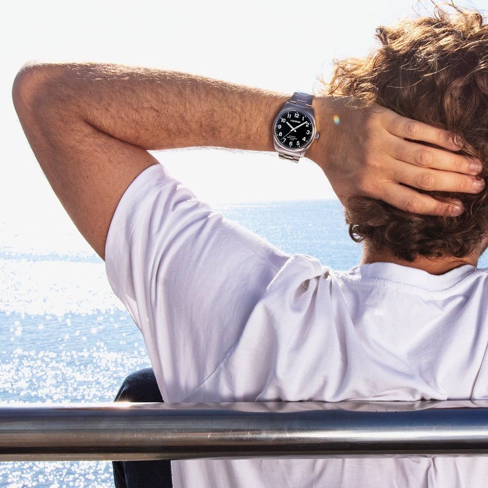 This casual black Calypso watch embodies a fresh, vibrant aesthetic tailored for those with an energetic and outgoing lifestyle. Featuring a sleek, minimalist design, it seamlessly blends style with functionality, making it an ideal everyday accessory. The bold black tone delivers a modern, understated look that contrasts beautifully with Calypso’s signature eye-catching details. Designed for those who value individuality, this timepiece adds a touch of subtle sophistication to any outfit while still capturing a lively and spirited essence. Perfect for those who enjoy timeless style with a contemporary edge.