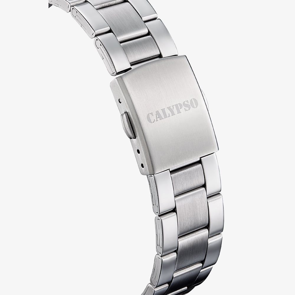 This silver Calypso watch is designed to captivate with their vibrant, fresh, and outgoing aesthetic, featuring bold colours that make a statement. These timepieces are perfect for individuals who embrace a lively and energetic lifestyle, offering a unique blend of style and functionality. Whether it's the striking hues or the modern design, Calypso watches are all about standing out and expressing personality through bold, eye-catching details. They are ideal for those who seek to add a pop of colour and excitement to their everyday wear.