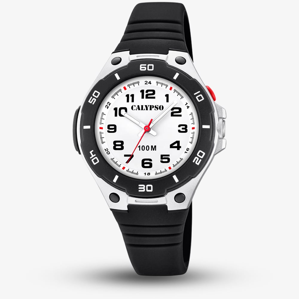 This Black Calypso Kids Watch is designed for young adventurers who appreciate style and functionality. Its case, crafted from lightweight plastic, measures a comfortable 38.8 mm in diameter, making it perfect for small wrists. The watch is fitted with a soft, flexible rubber strap that ensures a snug fit and lasting comfort for all-day wear. Inside the case, a reliable Seiko movement powers the watch, providing accurate timekeeping that parents can trust. Additionally, the watch features a durable Plexi crystal that offers protection against scratches, making it suitable for everyday activities. This Calypso watch is the ideal accessory for kids who are ready to explore the world around them!