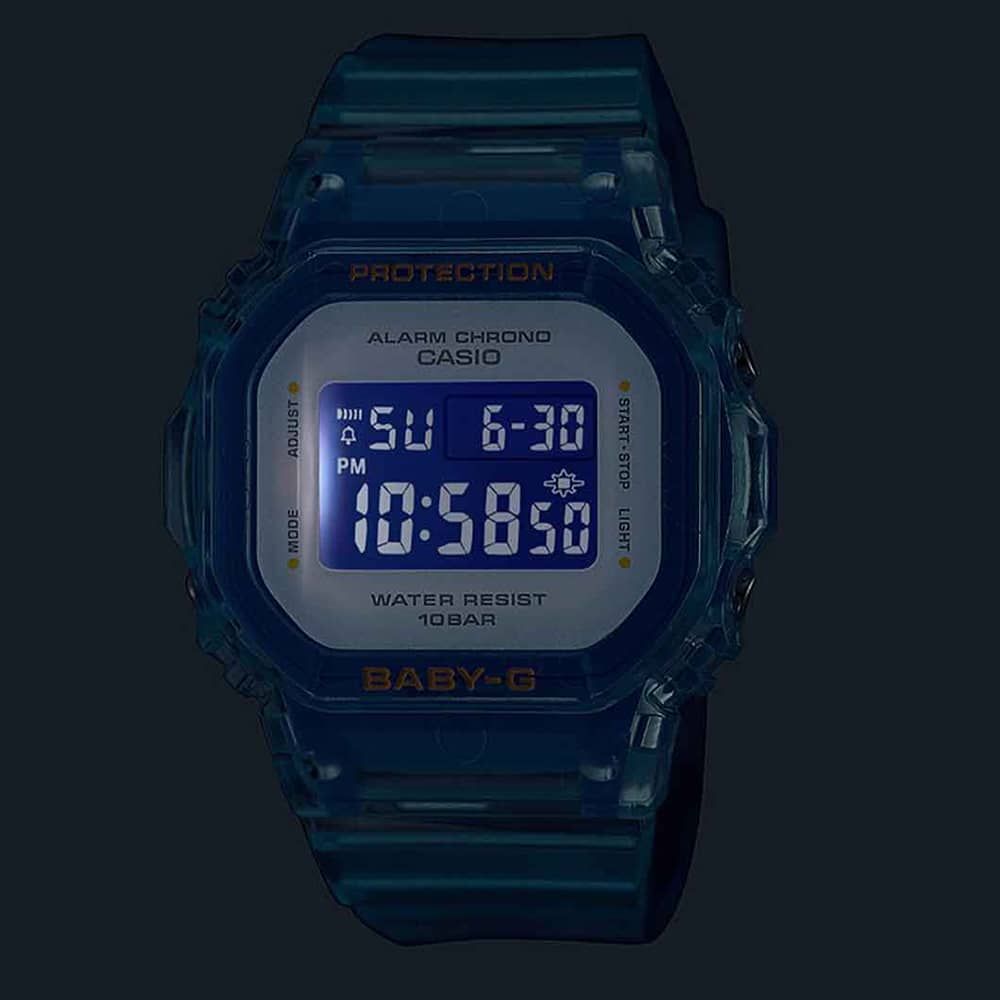 Vibrant, lively, and delightfully translucent, an ideal summer BABY-G companion for your dynamic lifestyle. This cheerful rendition of the compact BGD-565 showcases the classic bezel and band in transparent resin, revealing the vibrant tinted resin of the centre case. The watch boasts shock resistance and water resistance up to 100 meters. With its radiant, spirited, and playful design, it injects a dose of sunshine into your wardrobe and jumpstarts your summer adventures.