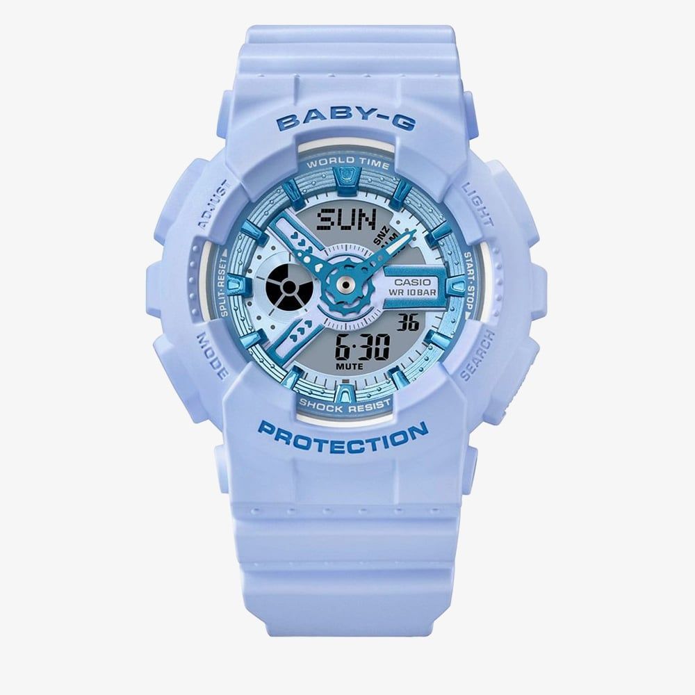 Inspired by the iconic 2000s trend that resonated with teens, this bright blue watch blends the distinct style of the BA-110 series with a standout face design,accompanied by an advanced alarm system and a world time display . A heart motif adds a playful, accessory-like flair, embodying the essence of Y2K fashion. The combination of matte and metallic tones brings together a uniquely expressive and stylish watch face.
