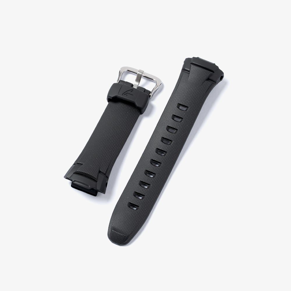 This Casio G-Shock watch strap is made of plastic. The band has a width of 25mm and is closed with a traditional silver pin buckle.