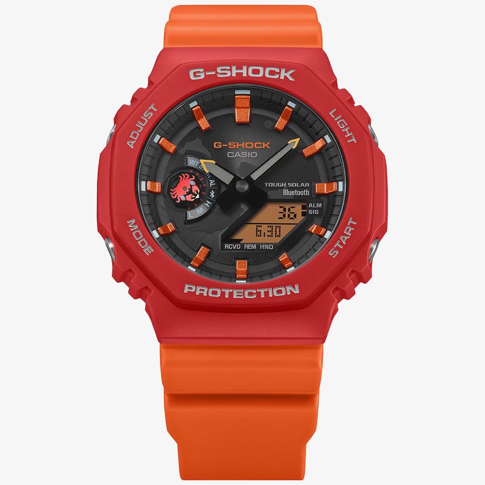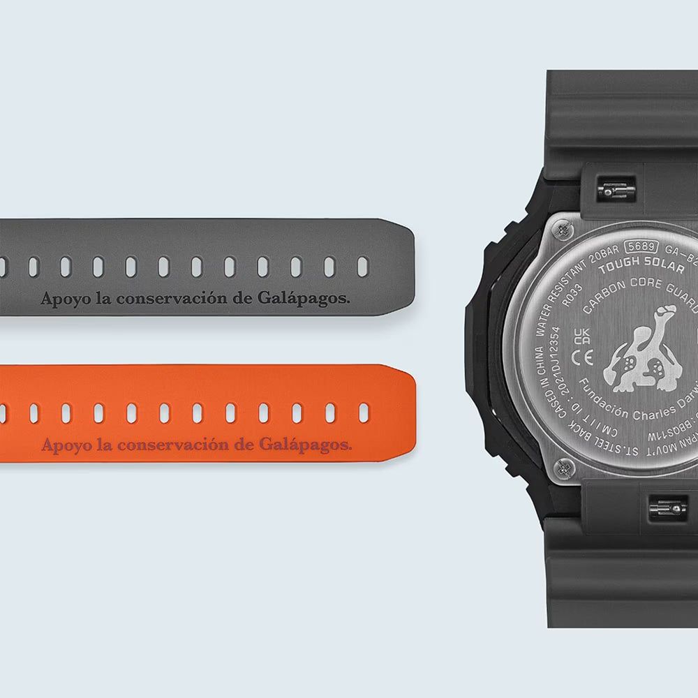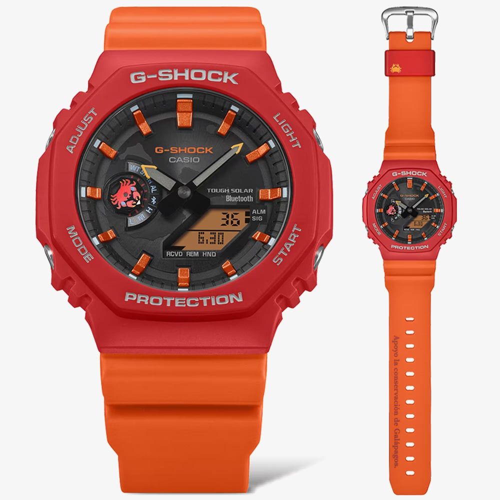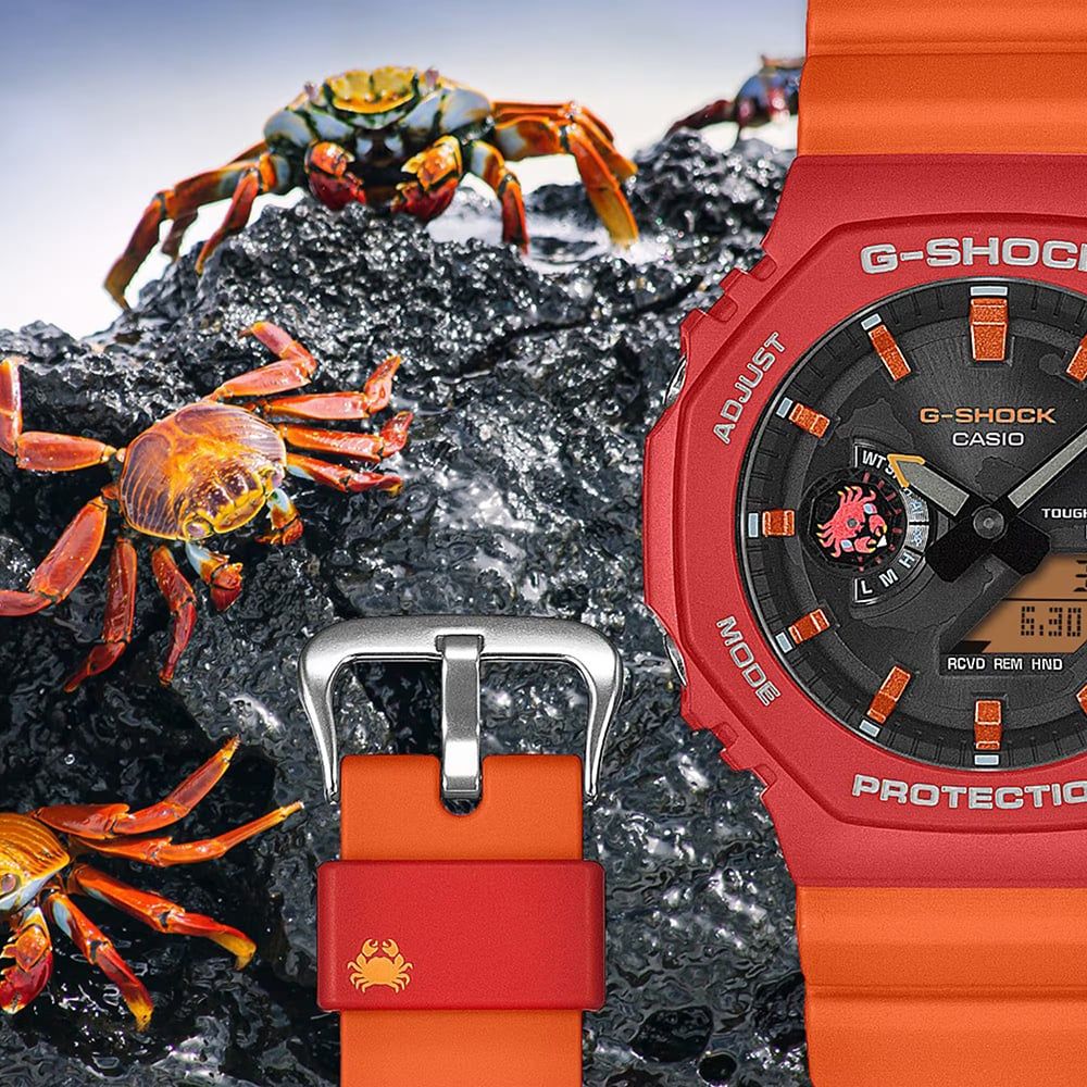 Crafted in partnership with the Charles Darwin Foundation, the GA-B2100DF-4A brings the vivid character of the Sally Lightfoot crab to the celebrated GA-B2100 silhouette. The bio-based resin case and strap have a warm tactile feel, shaped from renewable materials that echo the wild landscape of the Galápagos. Its solar assisted movement and Smartphone Link capability ensure dependable everyday performance, while the familiar G SHOCK toughness provides lasting confidence on land or sea.