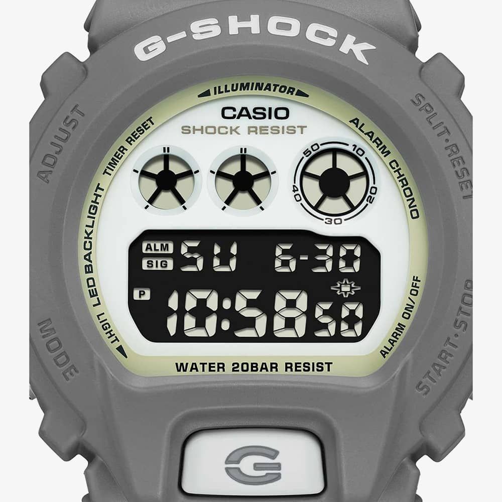 Drawing inspiration from human potential, the HIDDEN GLOW series features luminescent elements that illuminate in darkness. The base colour, grey, reminiscent of darkness, is complemented by luminescent parts on the face. White accents add contrast, symbolising light in a monochrome world. This watch is made of bio-based resin with a carbon core guard structure.