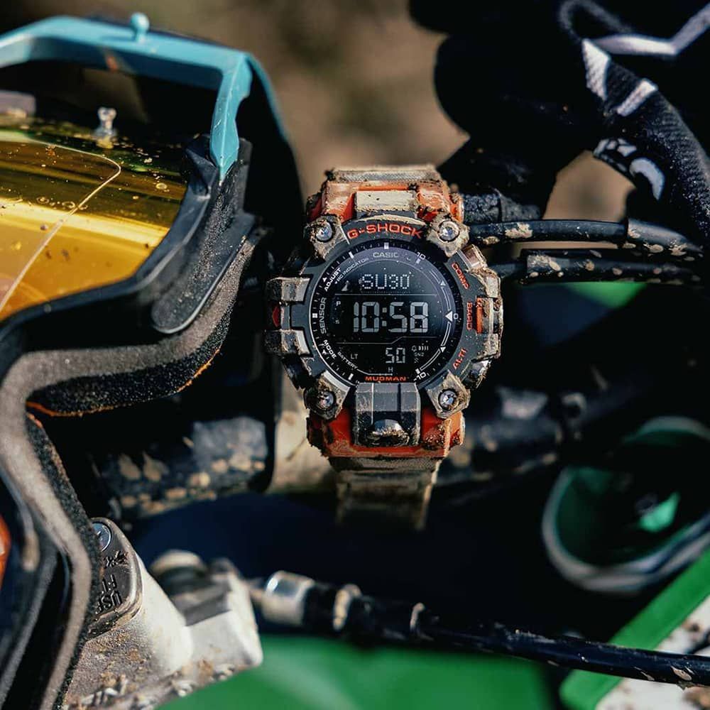 Pioneering durable, environment-resistant technology since 1995, the G-Shock MUDMAN returns with the GW-9500. Engineered to endure extreme conditions, this watch features the G-SHOCK's ultra-strong carbon core guard technology along with the essential tools and functions expected from a MUDMAN. Its highly reliable solar power ensures continuous operation, fuelled by any available light source. The GW-9500 can recharge itself from both artificial and natural light sources, ensuring uninterrupted performance wherever your adventures take you.