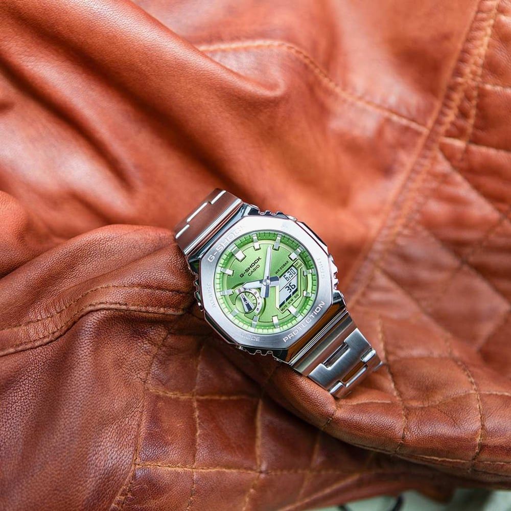 This new series honours the classic DW-5600C and 2100, offering a modern interpretation of their iconic minimalist design with metal-covered cases. These watches are designed for individuals who value both aesthetics and practicality. The striking metal band makes a strong impression, while the high-luminance double LED lighting and green metalic dial provide excellent visibility at all times.