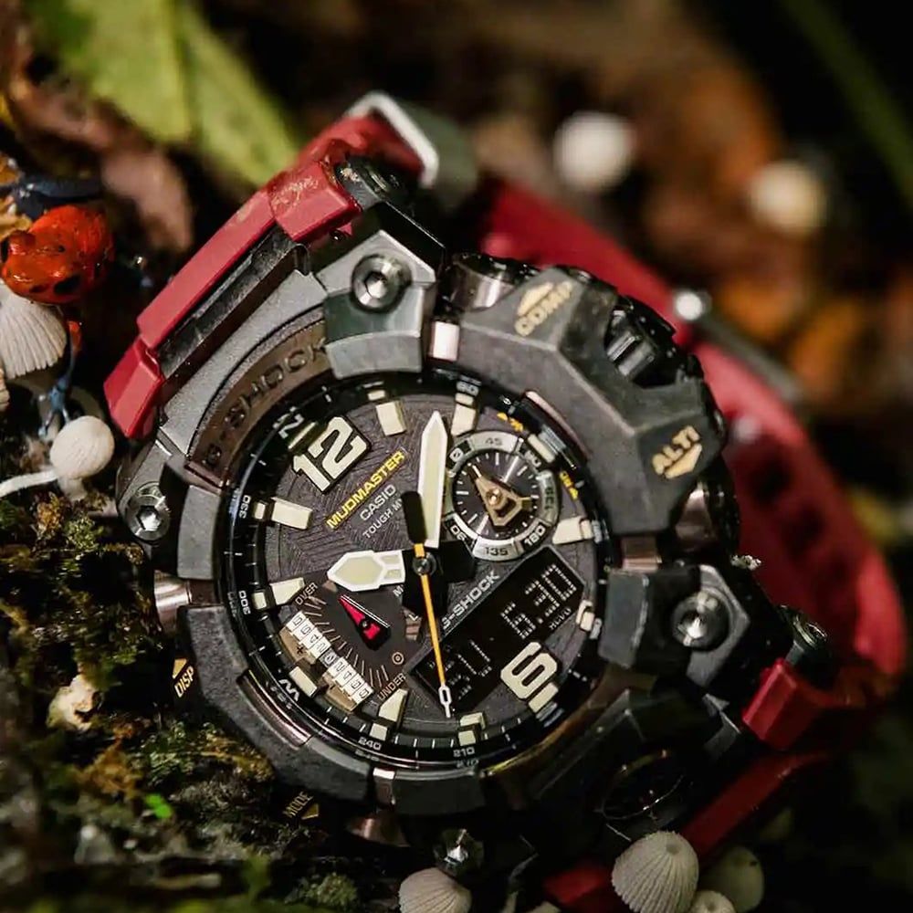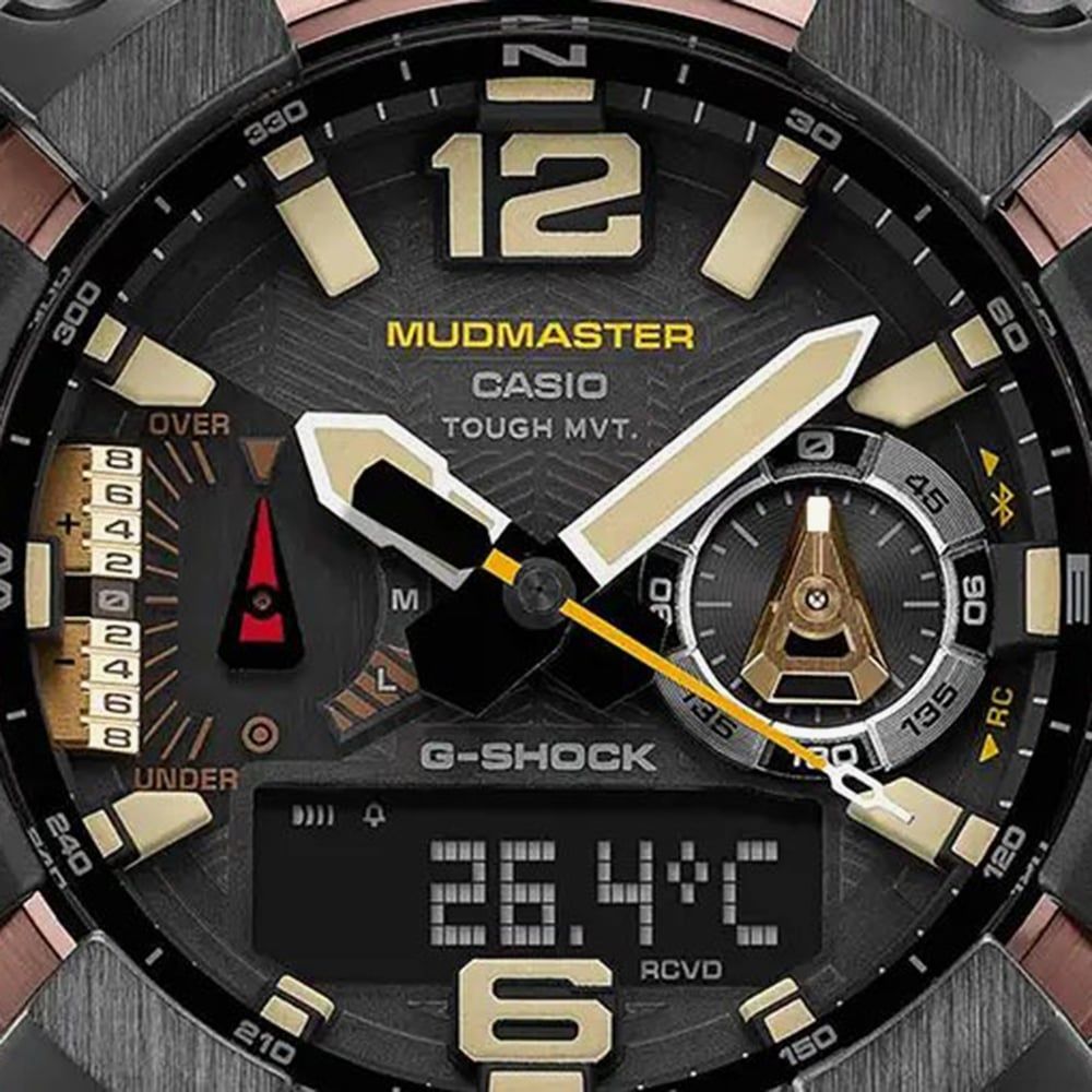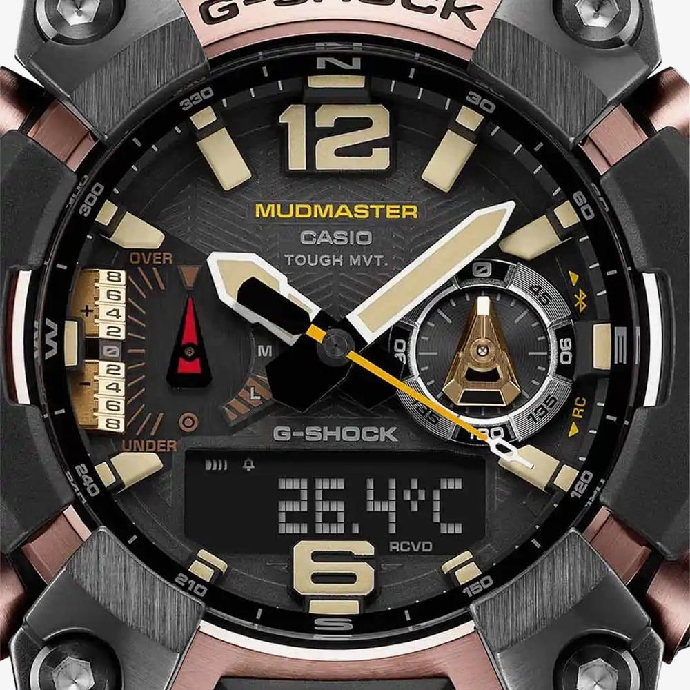 The MUDMASTER GWG-B1000 is the ultimate tactical powerhouse, built for adventurers and military professionals. Now featuring Bluetooth connectivity, Mission Log, and Location Indicator modes via the CASIO WATCHES APP, it ensures seamless navigation in any terrain. Part of the premium MASTER OF G line, it boasts a steel bezel, diamond carbon shock absorbers, and a bio-based carbon fibre guard for unmatched durability. With its legendary mud and environment resistance, this watch is ready for any mission.