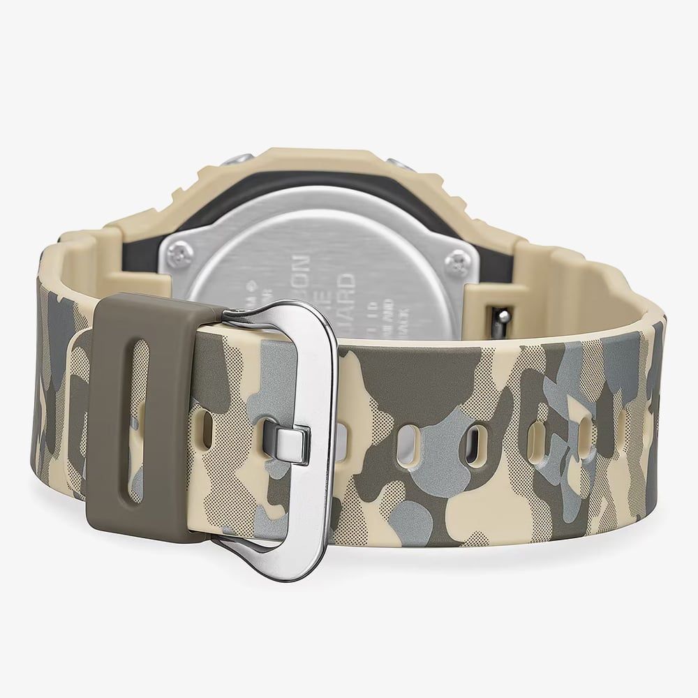 A contemporary reimagining of a classic aesthetic, the GA-2100CM-5AER introduces a sophisticated camouflage pattern to the iconic, streamlined 2100 silhouette. The earthy brown, green and tan tones are elevated by a metallic print, creating a refined edge that suits both urban explorers and outdoor enthusiasts. This design cleverly incorporates a hidden G-mark within the camo, offering a subtle nod to the brand’s storied resilience. The octagonal bezel and bio-based resin strap provide a lightweight yet incredibly durable feel, aligning modern style with an environmentally conscious approach.