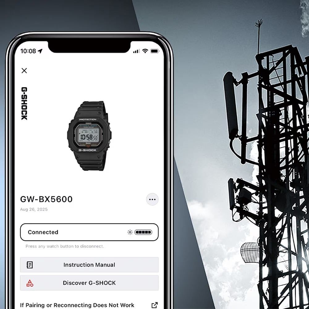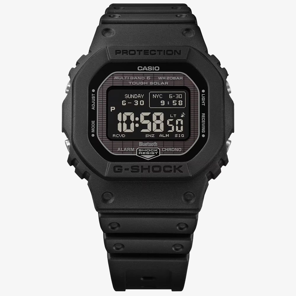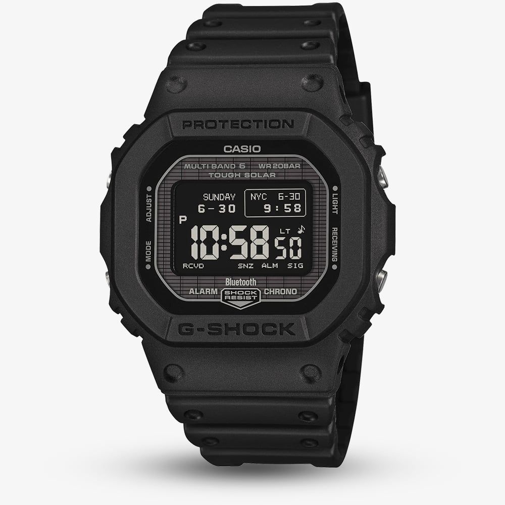 Powered by Tough Solar, the watch ensures reliable energy from sunlight, while Multiband 6 radio control keeps time perfectly accurate. The memory-in-pixel LCD display delivers clear readability, offering two font styles and four modes for a personalised interface. Bluetooth® connectivity allows seamless pairing with your smartphone, unlocking additional functionality at a touch. With a water resistance of 200 metres and a design that balances heritage with innovation, the GW-BX5600-1A1ER is suited to everyday adventures and extreme conditions alike. Every element, from the functional bezel to the sustainable resin band, reflects G-SHOCK’s commitment to durability, precision, and forward-thinking craftsmanship.
