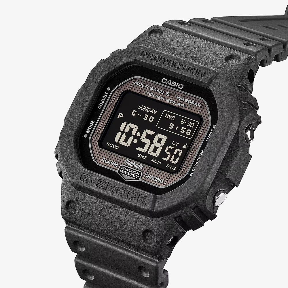 The G-SHOCK GW-BX5600-1A1ER is a masterclass in rugged technology and thoughtful design, built for those who demand both performance and style. Its compact case, crafted from durable bio-based resin, offers a lightweight yet resilient fit, while the classic square dial pays homage to the original DW-5600 series with subtle nods in colour and the brick-pattern solar panel.