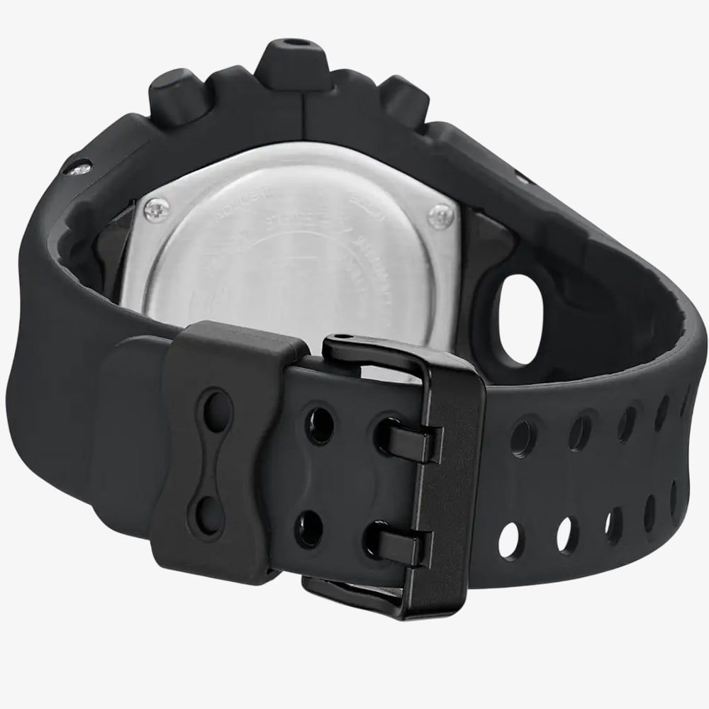 A standout timepiece that blends advanced functionality with signature G-Shock toughness. Designed for those who value precision and edge, this dual-display watch delivers uncompromising performance in a sleek black finish. This watch features both digital and analogue displays, offering clear timekeeping at a glance. Housed in a shock-resistant plastic case, it’s engineered to endure harsh conditions, while the 200-metre water resistance ensures you're covered either indoors or outdoors. The standout design adds a futuristic flair to its rugged profile. Equipped with a stopwatch, countdown timer, world time, and daily alarm, this G-Shock is made for those who live life on the go. The LED backlight ensures visibility in low light, and the comfortable resin strap provides a secure, all-day fit.