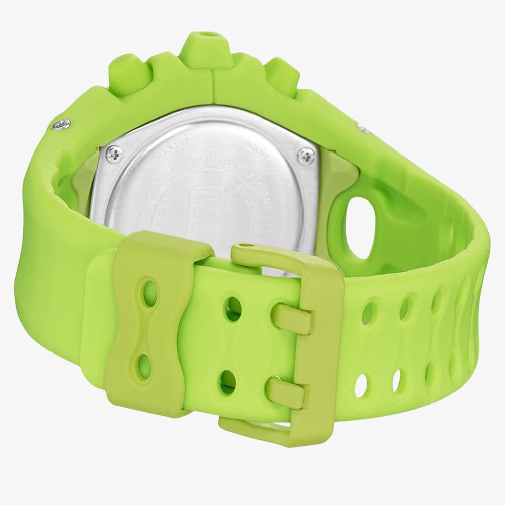 A rugged, high-performance timepiece designed to keep up with your toughest challenges. Combining G-Shock’s legendary durability with a bold, standout look, this watch is built for those who live life on the edge. Featuring a striking green plastic case and strap, offering a fresh, energetic twist on classic G-Shock styling. Its dual display merges analogue hands with a digital screen, offering versatile and precise timekeeping. Whatever environment you're navigating, this watch delivers both function and flair. Equipped with essential features such as a stopwatch, countdown timer, world time, daily alarms, and an LED backlight, it’s ready to perform whenever you need it. With shock resistance and 200-metre water resistance, this watch stands up to intense conditions while making a bold fashion statement.