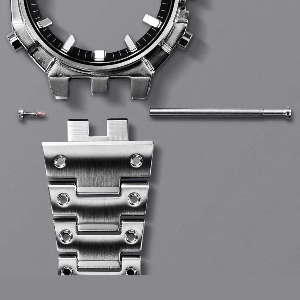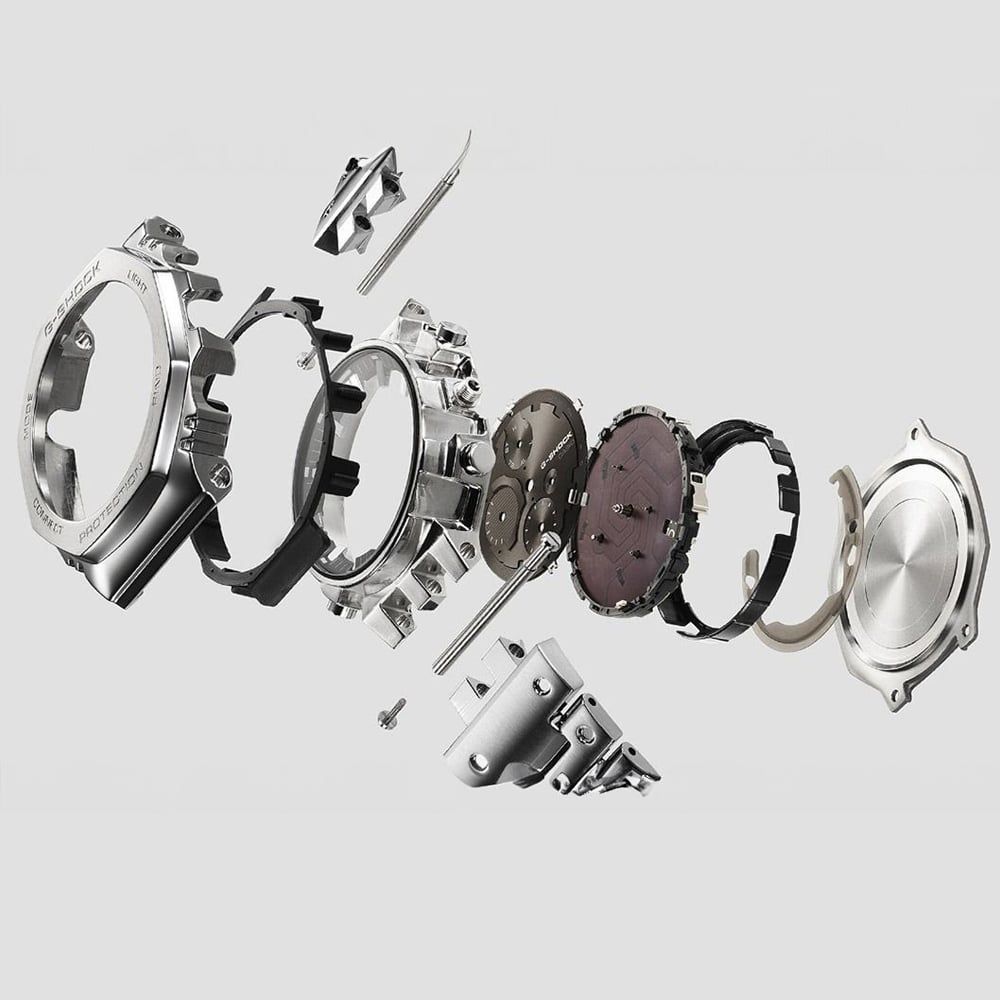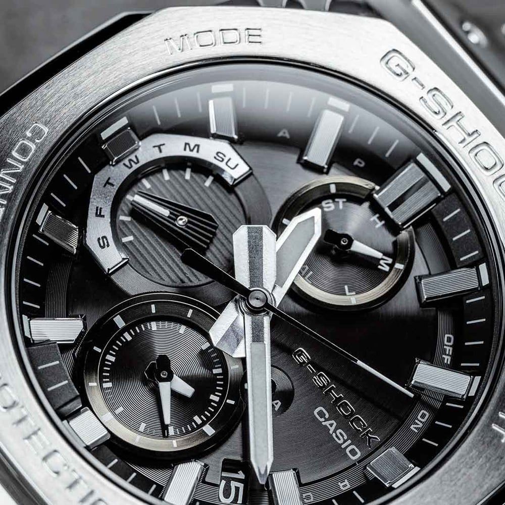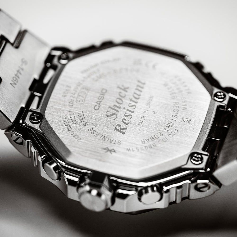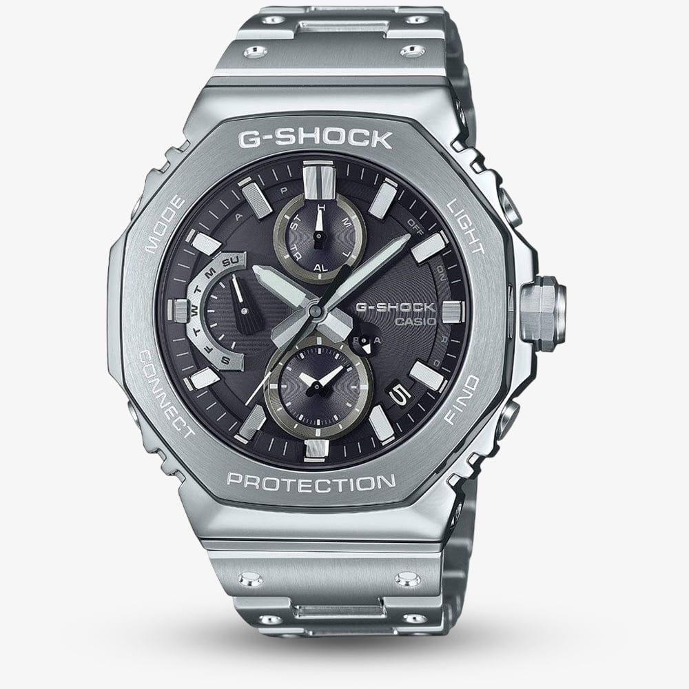 A premium timepiece crafted for those who demand style, performance, and durability. Made from sleek stainless steel, this full-metal watch showcases a bold and refined look, perfect for both professional and casual wear.The watch features a chronograph function along with a digital display, offering precision timekeeping and multiple useful features such as world time, an alarm, and a countdown timer. Its tough construction ensures shock resistance, while water resistance up to 200 meters makes it suitable for various outdoor activities.With Bluetooth connectivity, this watch can pair with your smartphone for enhanced functionality, including automatic time updates and access to additional settings via the G-Shock app.