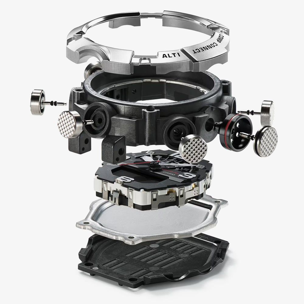 The watch is powered by a Quad Sensor system, providing critical data including altitude, barometric pressure, temperature, and step counting. Integration with the dedicated app via Bluetooth unlocks advanced navigation features like the Location Indicator and Mission Log. To ensure visibility in total darkness, the dial and digital display are illuminated by a high-brightness auto double LED light. With 200-metre water resistance and a spherical mineral glass lens, this model is a robust, high-performance instrument tailored for those who push the limits of exploration.