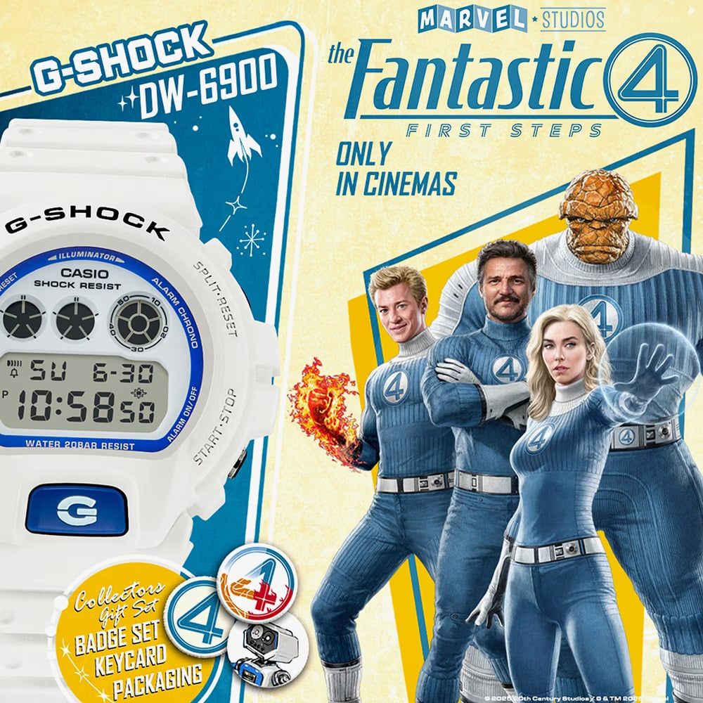 LAUNCH INTO HERO MODE: G-SHOCK x Marvel Studios’ The Fantastic Four: First Steps – A Limited Collector’s Edition Built for Adventure. Inspired by Marvel’s original super-team, this four-watch set features bold white-and-blue designs that echo the iconic suits of the Fantastic Four. Each piece embodies cosmic resilience with G-SHOCK’s signature shock resistance, 200m water resistance, and essential digital features like a stopwatch, countdown timer, multi-function alarm, and backlight. Crafted for collectors and fans alike, this set celebrates the fearless spirit of exploration, science, and strength that launched the Fantastic Four into legend. Complete with a comfortable resin strap and robust case, it’s style and substance in perfect sync.