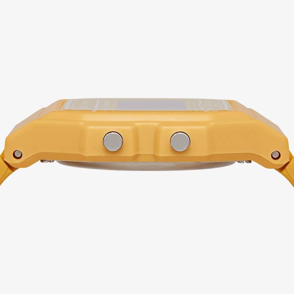 This watch boasts a digital display, a stopwatch accurate to the hundredth of a second, an alarm, and a microlight. Finished in a striking yellow hue, this timeless piece is perfect for any occasion.