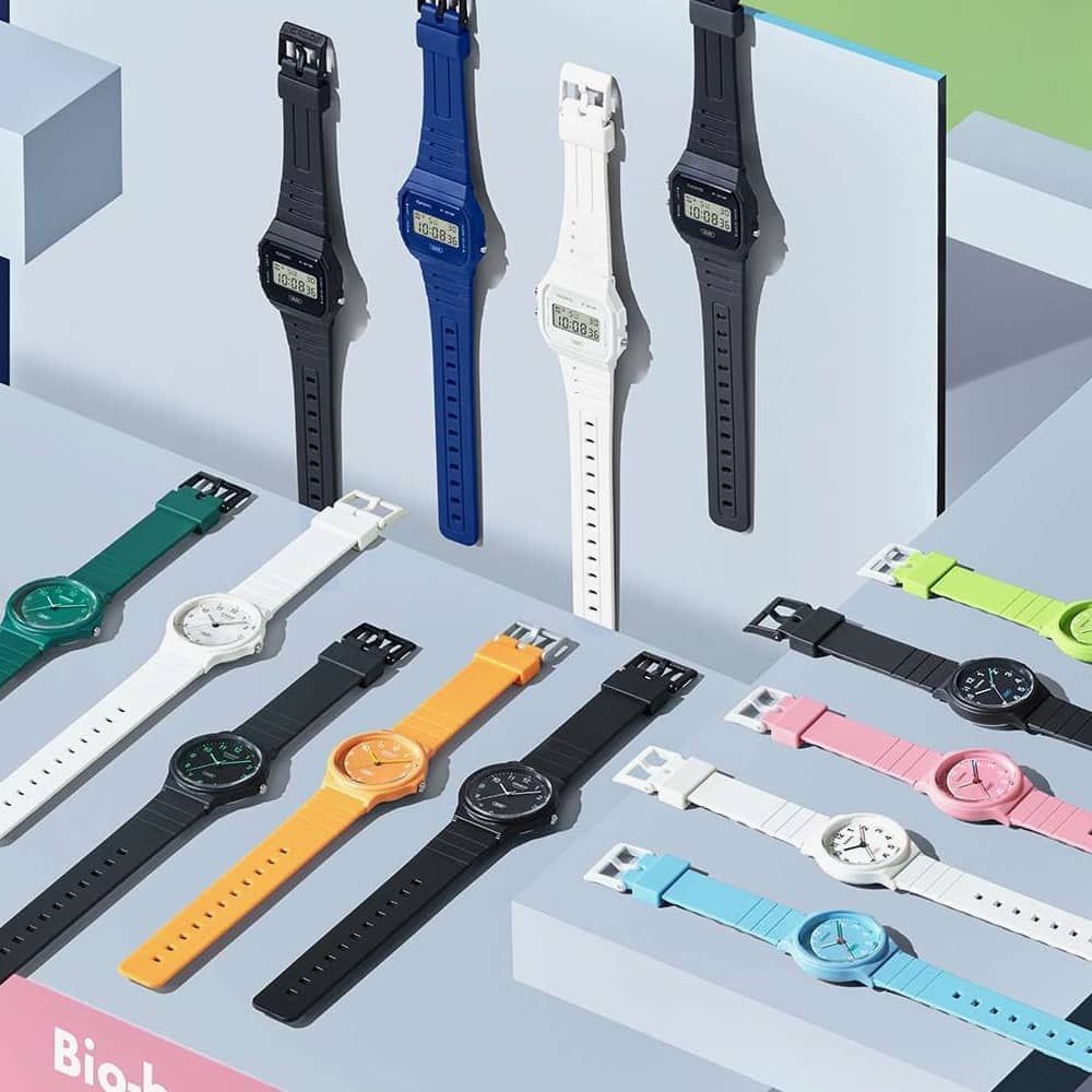 • Presented on a black bio-sourced plastic strap with traditional buckle.