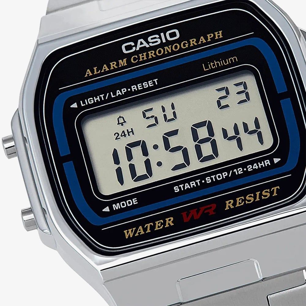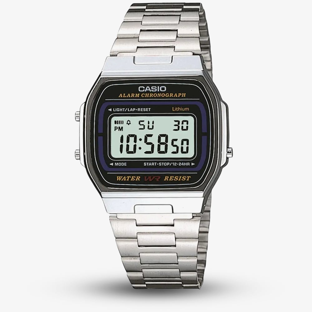 The Casio Unisex Vintage Silver & Black Digital Watch blends retro style with modern functionality. Part of Casio’s Vintage collection, it features a 1/100 sec stopwatch, daily alarm, microlight, auto calendar, and water resistance. Its classic silver-tone case and black digital display make it a timeless accessory for everyday wear.
