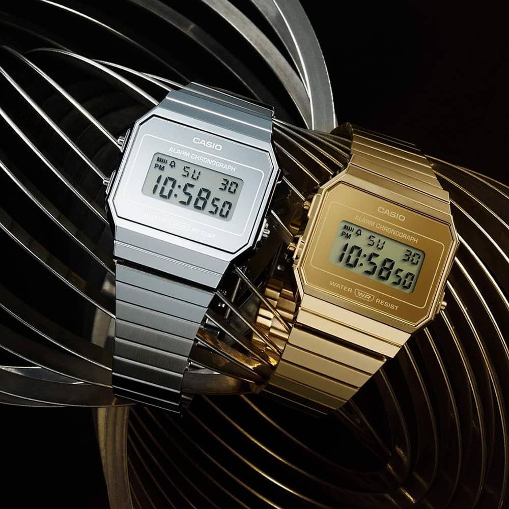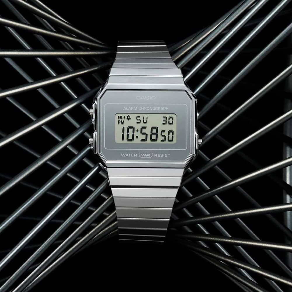 This sleek silver stainless steel watch features a digital display and an octagonal case shape. It boasts a battery life of 3 years, combining durability with modern style.
