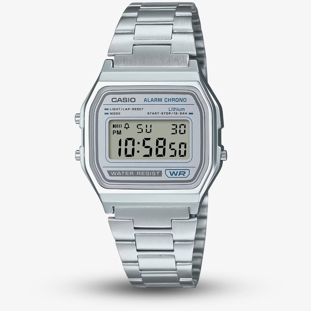 • 33.2mm case width.Casiohttps://www.thbaker.co.uk/media/catalog/product/2/1/21-42-25138450_casio_02.jpghttps://www.thbaker.co.uk/media/catalog/product/2/1/21-42-25138450_casio_03.jpghttps://www.thbaker.co.uk/media/catalog/product/2/1/21-42-25138450_casio_model_01.jpghttps://www.thbaker.co.uk/media/catalog/product/2/1/21-42-25138450_casio_model_02.jpghttps://www.thbaker.co.uk/media/catalog/product/2/1/21-42-25138450_casio_model_03.jpghttps://www.thbaker.co.uk/media/catalog/product/2/1/21-42-25138450_casio_model_04.jpghttps://www.thbaker.co.uk/media/catalog/product/2/1/21-42-25138450_casio_model_05.jpg4549526408434condition:Noex_display:NoNoNo214225138450CasioA158WEA-7EFUnisexOfficial Casio Packaging2 Year Casio WarrantyDigitalNoWatchSilverStainless Steel BraceletPlasticOctagon8.5mm33.2mmDigitalPlasticSilverScreenQuartz45.0gYesYesNoNoYesYesNo{"name":"Klarna","text":"Pay In 30 Days","imageUrl":"https:\/\/www.thbaker.co.uk\/media\/nosto\/klarna.png"}Casio Vintage Silver Digital Watch21-42-251384502026-03-02 00:00:0002026-03-02