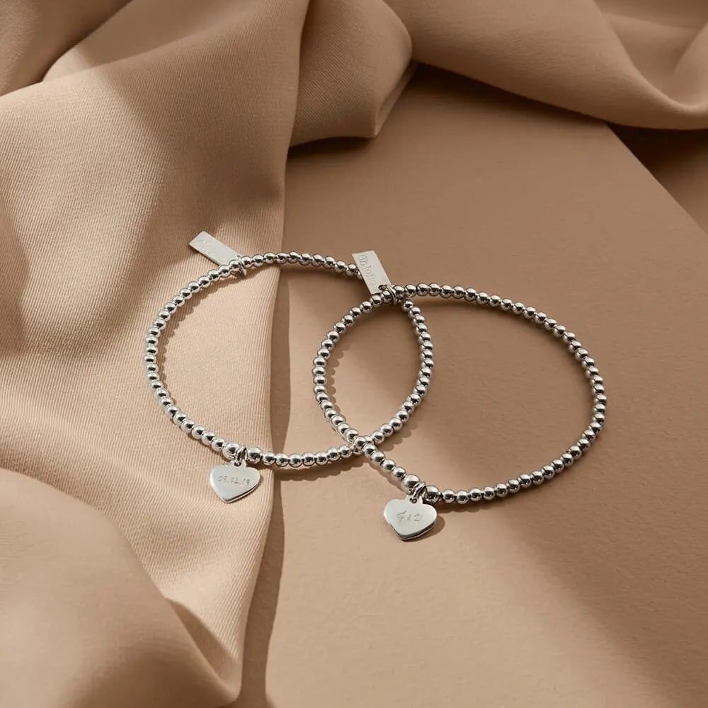 This stylish Silver bracelet from ChloBo Jewellery is the perfect addition to any outfit. The bracelet is made up of Sterling Silver balls and features a mini Silver plain heart charm. A perfect gift for someone special. ChloBo Iconic Mini Collection Sterling Silver Bracelet with ChloBo branded tag Mini plain heart charm. Images show examples of engraving.
